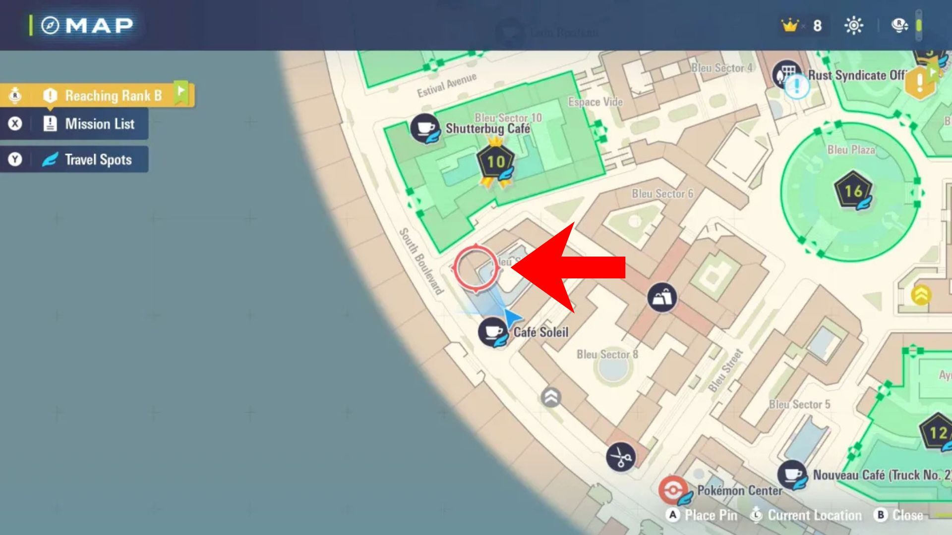 Окей, так Bleu Sector 9 находится прямо под Wild Zone 10 и немного левее, если смотреть на торговый центр Passage de la Félicité. Если я пытаюсь поймать Dratini, самый быстрый способ – быстро переместиться в Café Soleil, а затем найти леса поблизости – это позволяет мне забраться на крыши, где они тусуются.