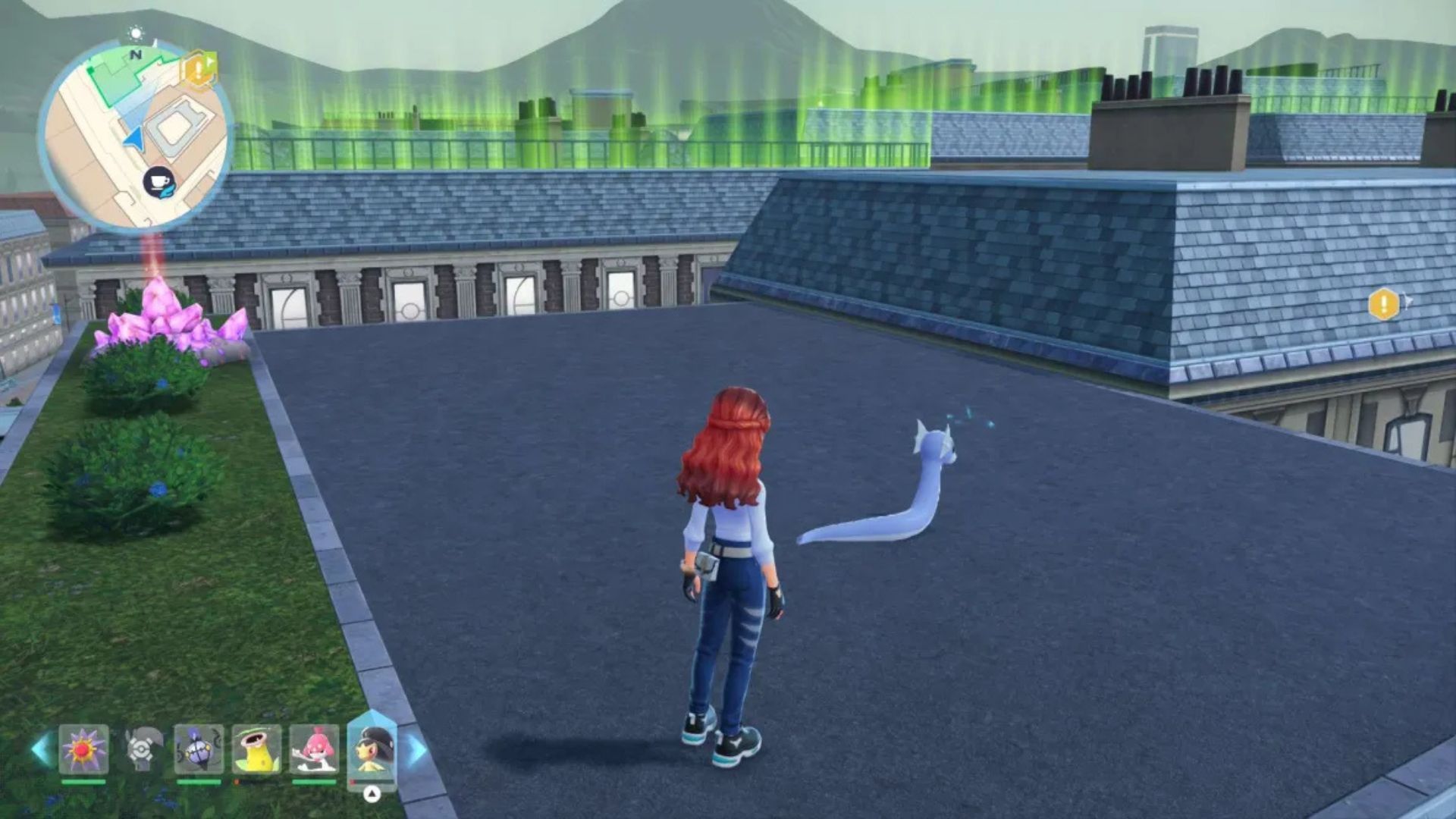 После того, как вы подниметесь на крыши, направляйтесь в северо-западную часть Bleu Sector 9. Там вы обычно найдете Dratini. Если его там нет сразу, просто подождите немного, и он должен появиться. В этой области также можно найти редкую, более сильную версию Dratini (альфа), хотя она появляется чаще ночью.