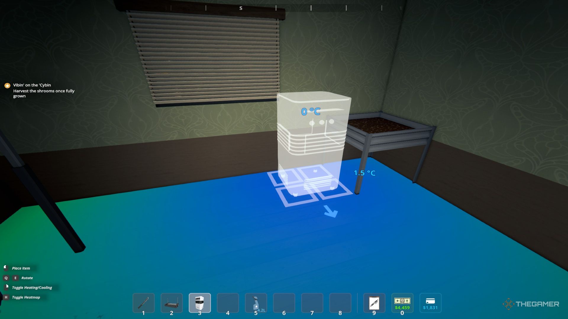 Размещение блока кондиционирования происходит так же, как и размещение любого другого предмета в игре. Вы можете настроить его параметры во время размещения, щелкнув правой кнопкой мыши. В качестве альтернативы, после размещения просто наведите курсор на кнопки Cool, Heat или Off и нажмите ‘E’, чтобы изменить настройки.