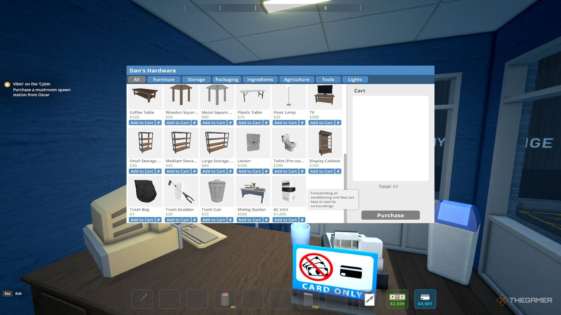Блок кондиционирования был добавлен с обновлением Shrooms и не доступен сразу. Вы можете купить его в магазине оборудования Дэна за 1800 долларов, но только после того, как достаточно продвинетесь в основной сюжетной линии. В частности, вам нужно будет разблокировать Downtown и начать выращивать и продавать Shrooms, прежде чем он станет доступен.