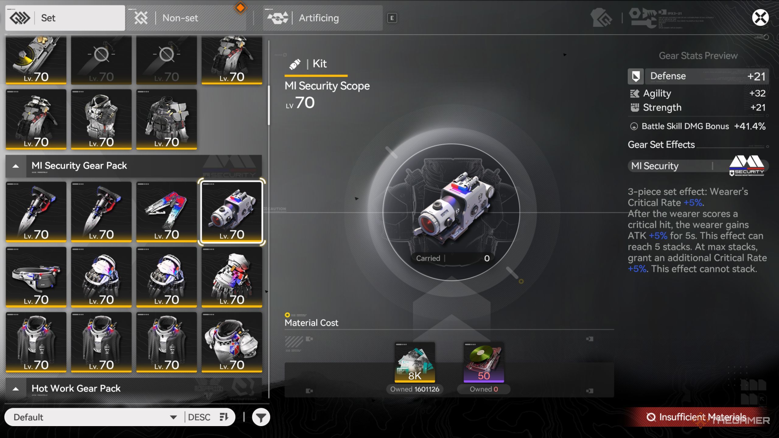После разблокировки комплекта снаряжения вам понадобятся материалы для его создания. Чем реже комплект, тем сложнее получить материалы, но всё необходимое можно получить, не тратя ничего. Вы будете создавать эти материалы, играя в фабричную игру.