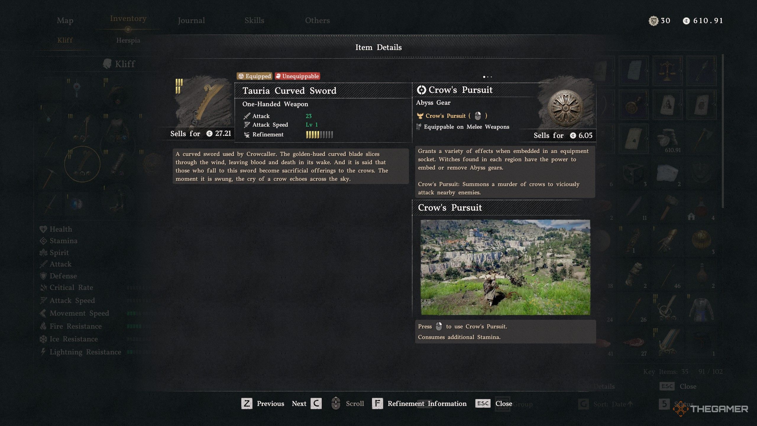Меч Таурия быстрый и имеет слот для Снаряжения Бездны, а также специальную способность под названием Погоня Ворона. При выполнении сильной атаки он выпускает рой воронов, которые атакуют находящихся поблизости врагов. Это делает его отличным для сражений с группами, так как вороны могут отвлекать и наносить урон другим противникам, пока вы сосредотачиваетесь на своей основной цели. Однако это не лучший выбор для битв с боссами, поэтому я предлагаю использовать такое оружие, как Darkbringer для этих столкновений.