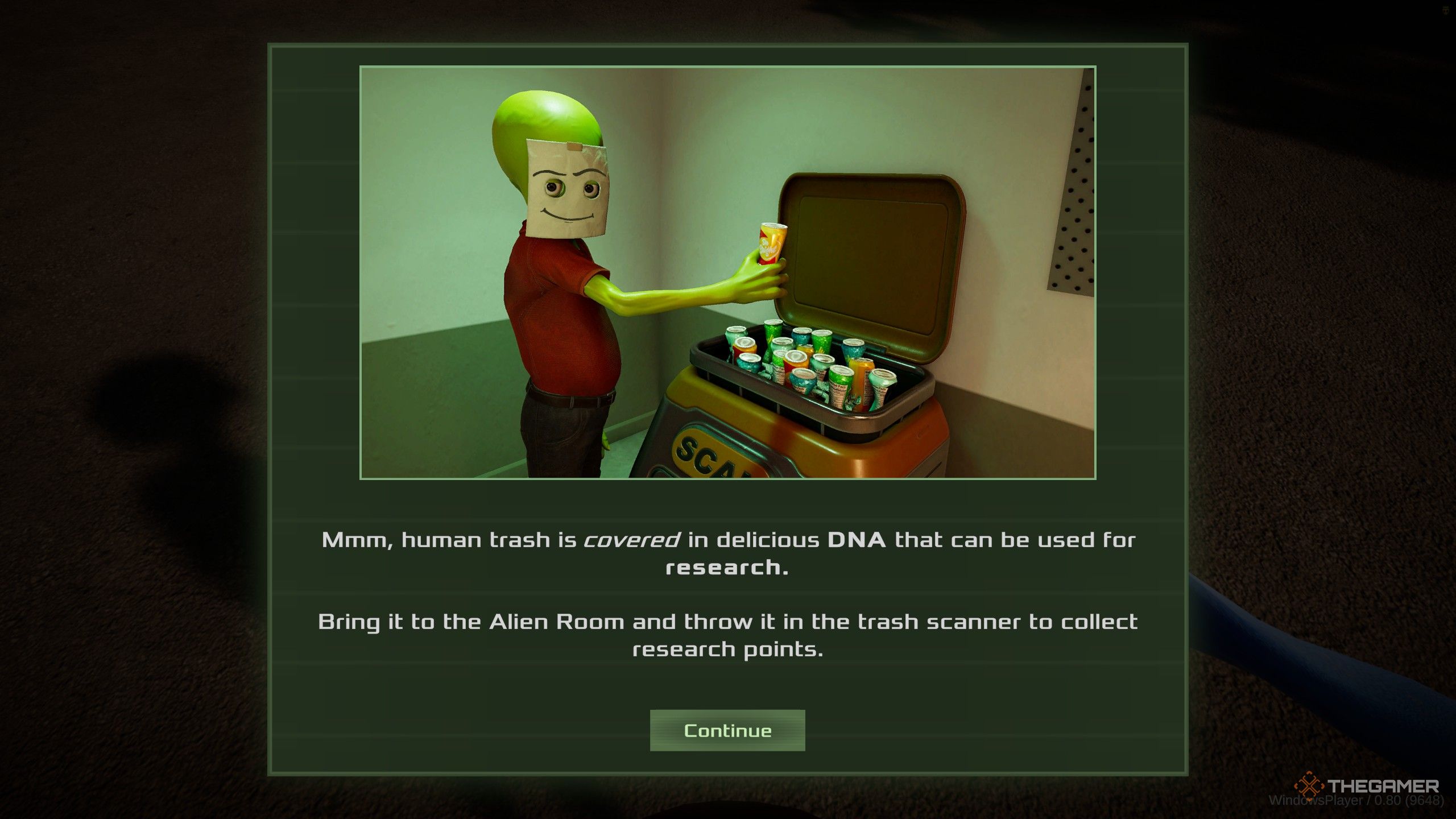 Сбор мусора — самый простой способ заработать очки исследований. Люди оставляют его разбросанным повсюду, и каждый предмет обычно даёт вам около 20 очков. Однако вам нужно подбирать каждый предмет по отдельности и относить его к Сканеру мусора, расположенному в задней комнате магазина.
