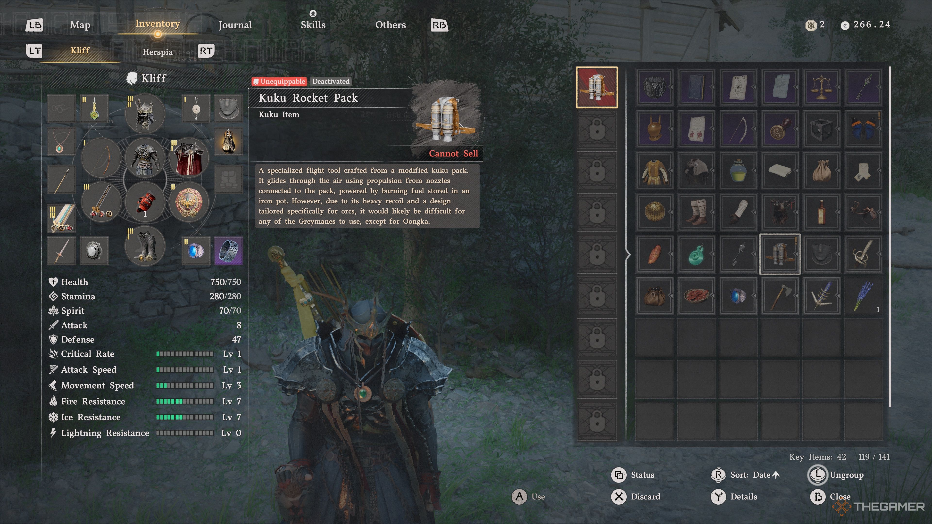 Сообщение подскажет, как использовать Ракетный Рюкзак Kuku: просто нажмите X или Square, находясь в воздухе, чтобы активировать его. Имейте в виду, что использование Ракетного Рюкзака уменьшит вашу выносливость.