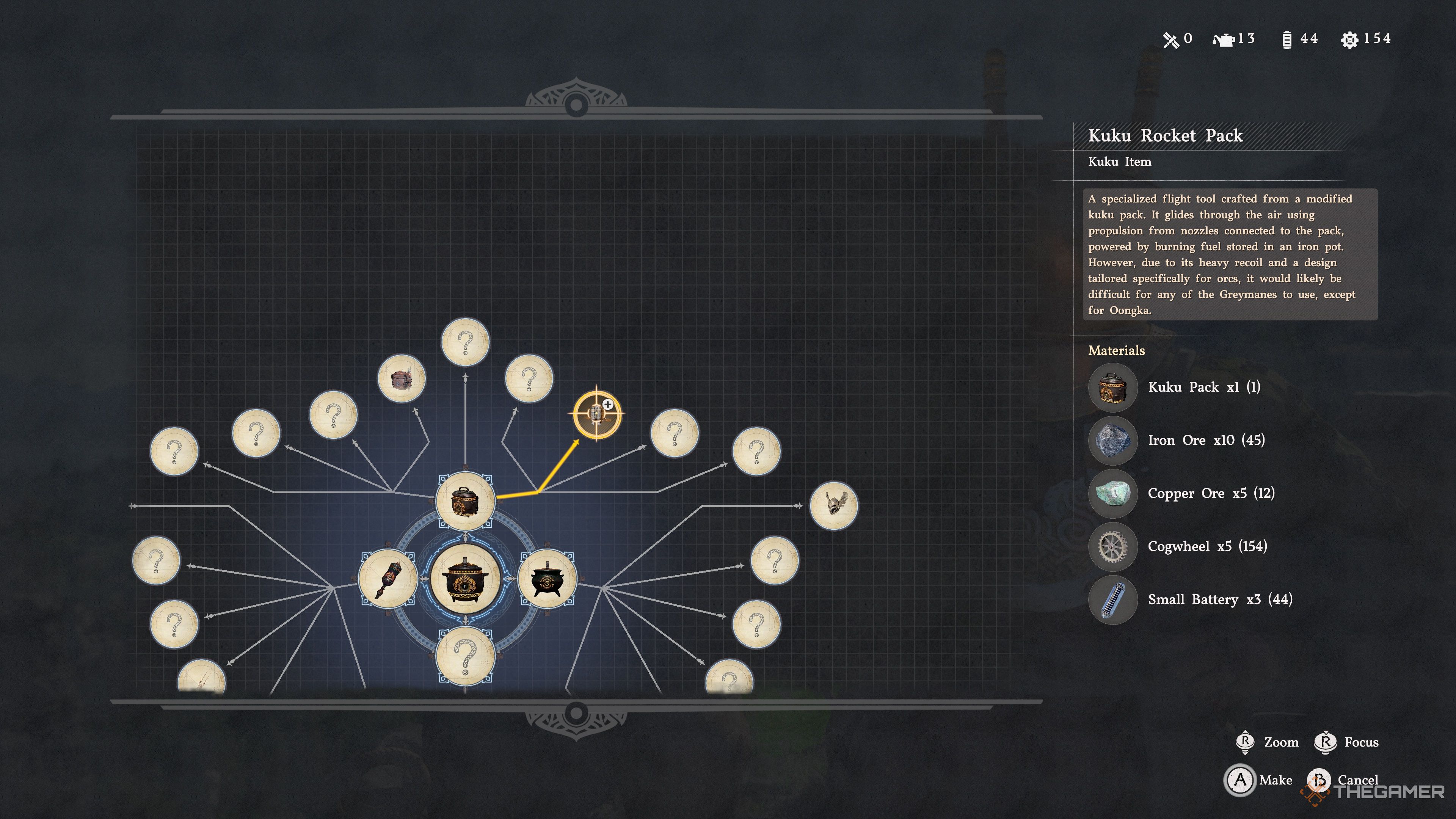 Прежде чем Гримнир сможет помочь вам создать Куку Ракетный Рюкзак, вам нужно будет собрать необходимые детали.