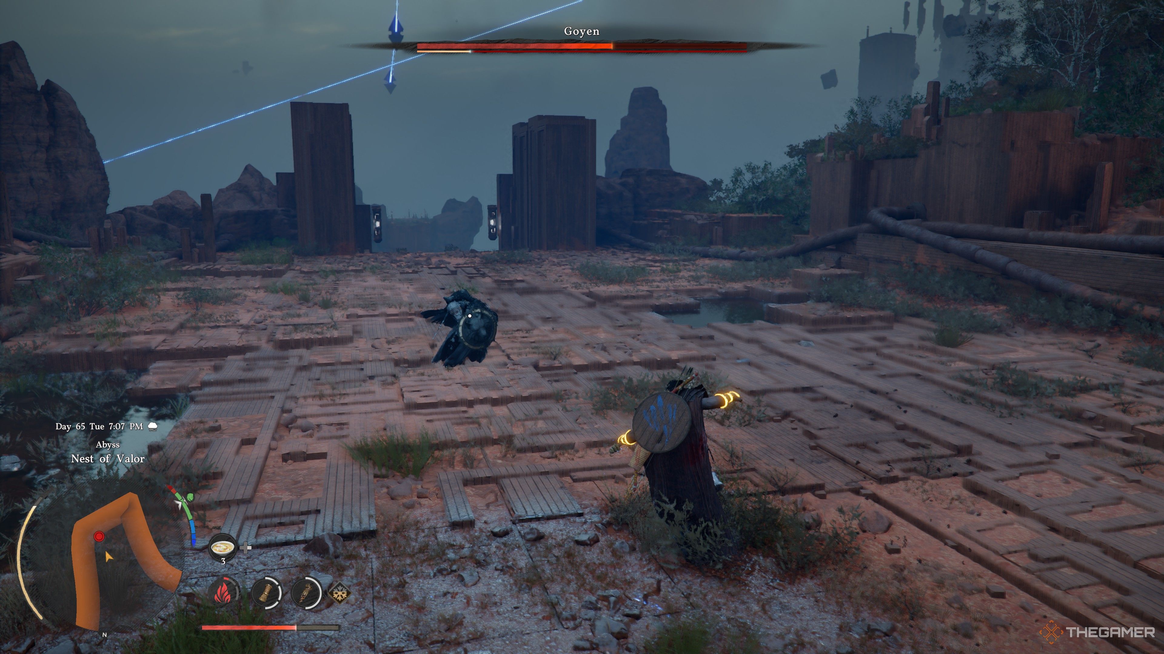 Чтобы завершить набор снаряжения Greaysoul Howling Abyss, вам нужно победить Гойена, которого многие считают Клиффом из будущего. Эта теория исходит из того факта, что Гойен использует почти те же атаки, что и вы, такие как Force Palm, Turning Slash, Forward Slash и Charged Shot. На этом этапе игры у вас должен быть сильный билд персонажа, но я настоятельно рекомендую использовать Turning Slash со стихией Огня и Abyss Mod Volcanic Eruption – эта комбинация наносит огромное количество урона здоровью и стаггера Гойену.