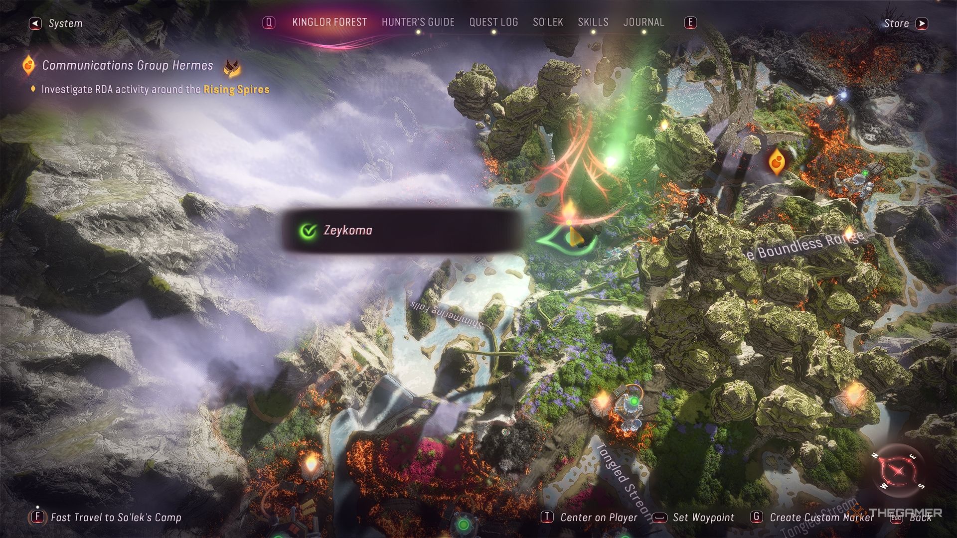 Ещё один плод Зейкомы находится в оврагах к юго-западу от леса. Отправляйтесь на форпост «Ворон Альфа», захватите его, а затем следуйте по тропе цветов, чтобы найти плод.