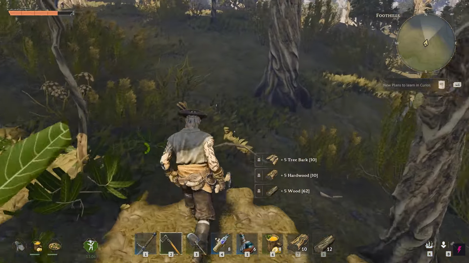 После того, как вы откроете область Foothills, вам понадобится Медный Топор или более прочная кирка, чтобы собирать ресурсы там. Вы можете изготовить Медный Топор на Верстаке, используя всего 5 Медных Слитков и 5 Дерева. Как только у вас он будет, отправляйтесь в северную часть Foothills. На всей территории предостаточно ресурсов, но вы найдете больше всего Hardwood, исследуя более высокие возвышенности.