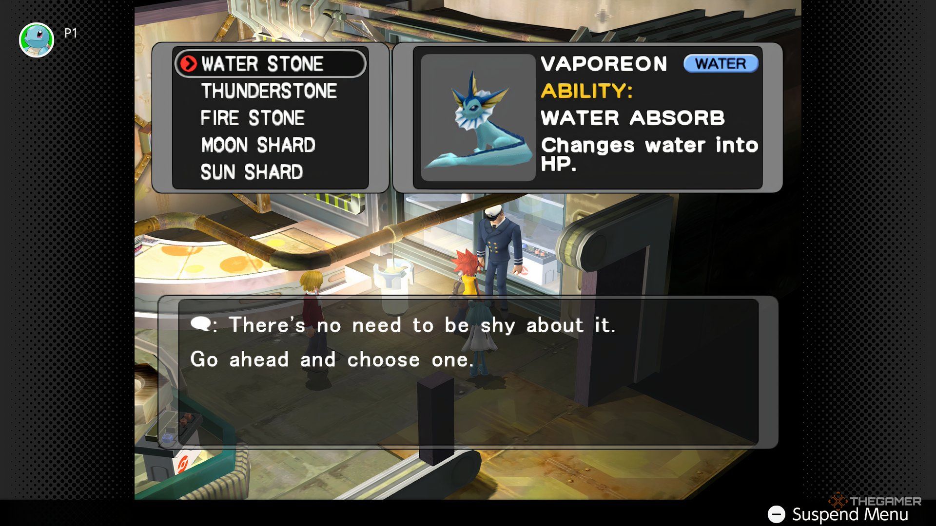 Окей, так что если ты хочешь Vaporeon, это довольно просто! Отправляйся в Gateon Port и возьми Water Stone. Затем просто используй его на своем Eevee, и бум, мгновенный Vaporeon! Это работает так же, как в обычных играх Pokémon – как в FireRed и LeafGreen. Как только у тебя появится этот Water Stone, ты сможешь эволюционировать Eevee, когда будешь готов.