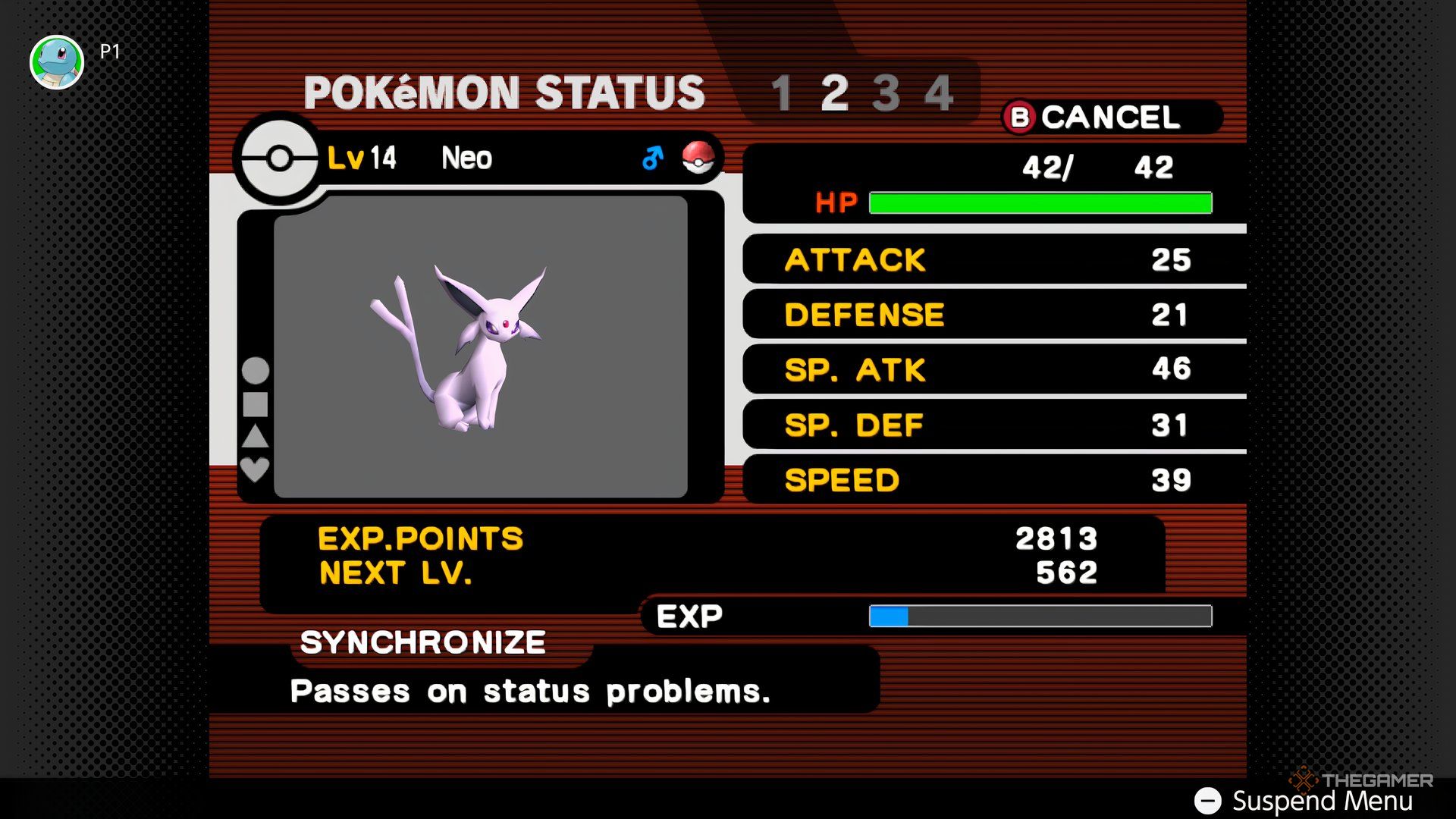 Espeon — мощный специальный атакующий, доступный в начале игры, который быстро побеждает более слабых покемонов противников такими атаками, как Confusion и Psybeam. Хотя позже он становится более хрупким, его исключительная Special Attack позволяет ему выбивать многих покемонов с одного удара, особенно тех, кто уязвим к Psychic-типу атак — например, Poison-типы, часто используемые Team Snagem.