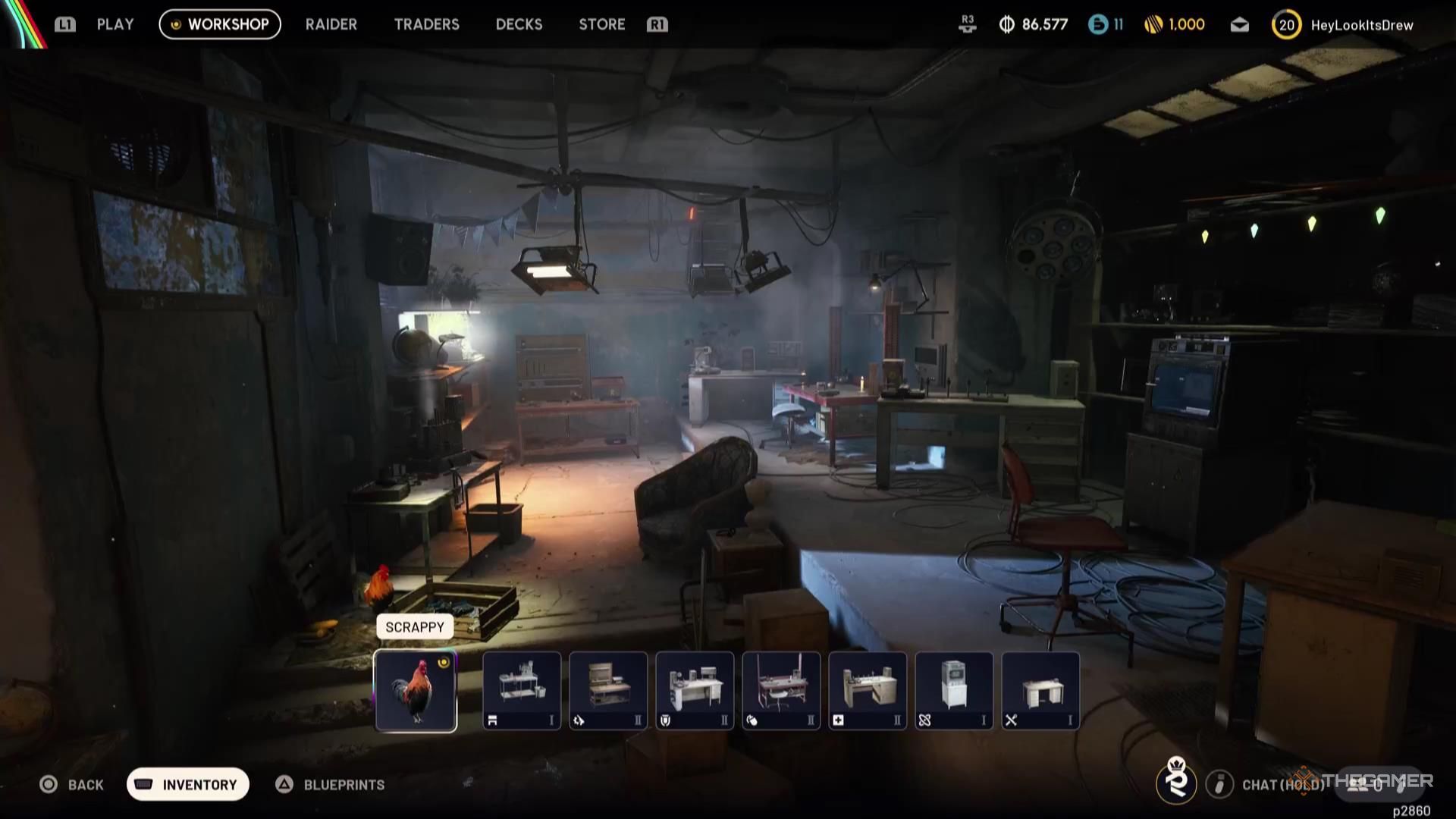 Ваш компаньон-петух, Скраппи, будет автоматически собирать ресурсы за вас во время исследования. Это поможет вам создавать предметы, не таская всё с собой!