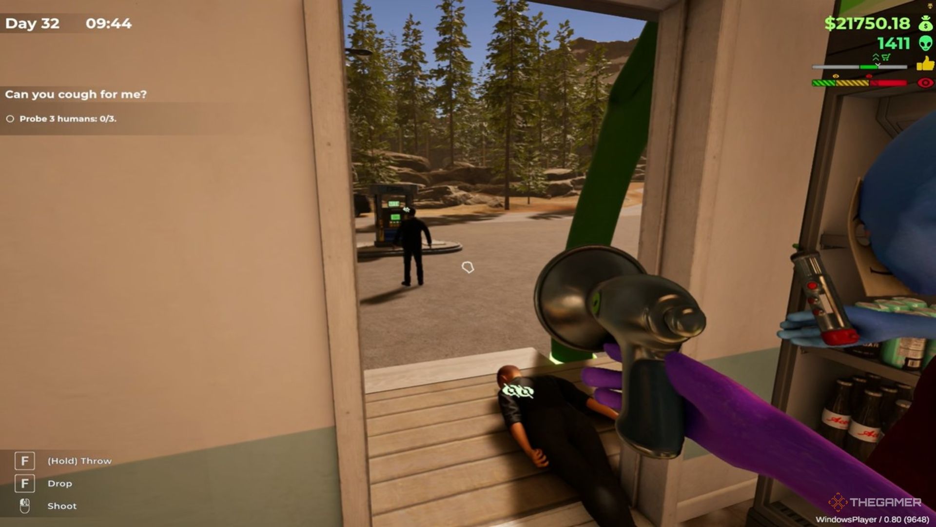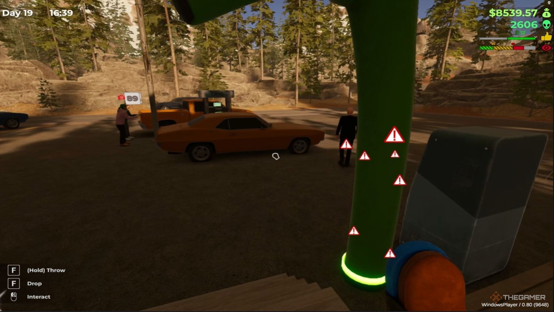 Вы также можете обнаружить, что ваши передовые технологии работают некорректно. Если власти начинают подозревать вас, но еще не допросили (или после того, как вы успешно ответили на их вопросы), они повредят вашу заправочную станцию, чтобы помешать вам получить признание инопланетян. Вам нужно будет обойти свой магазин и нажать на сломанные предметы, чтобы отремонтировать их.