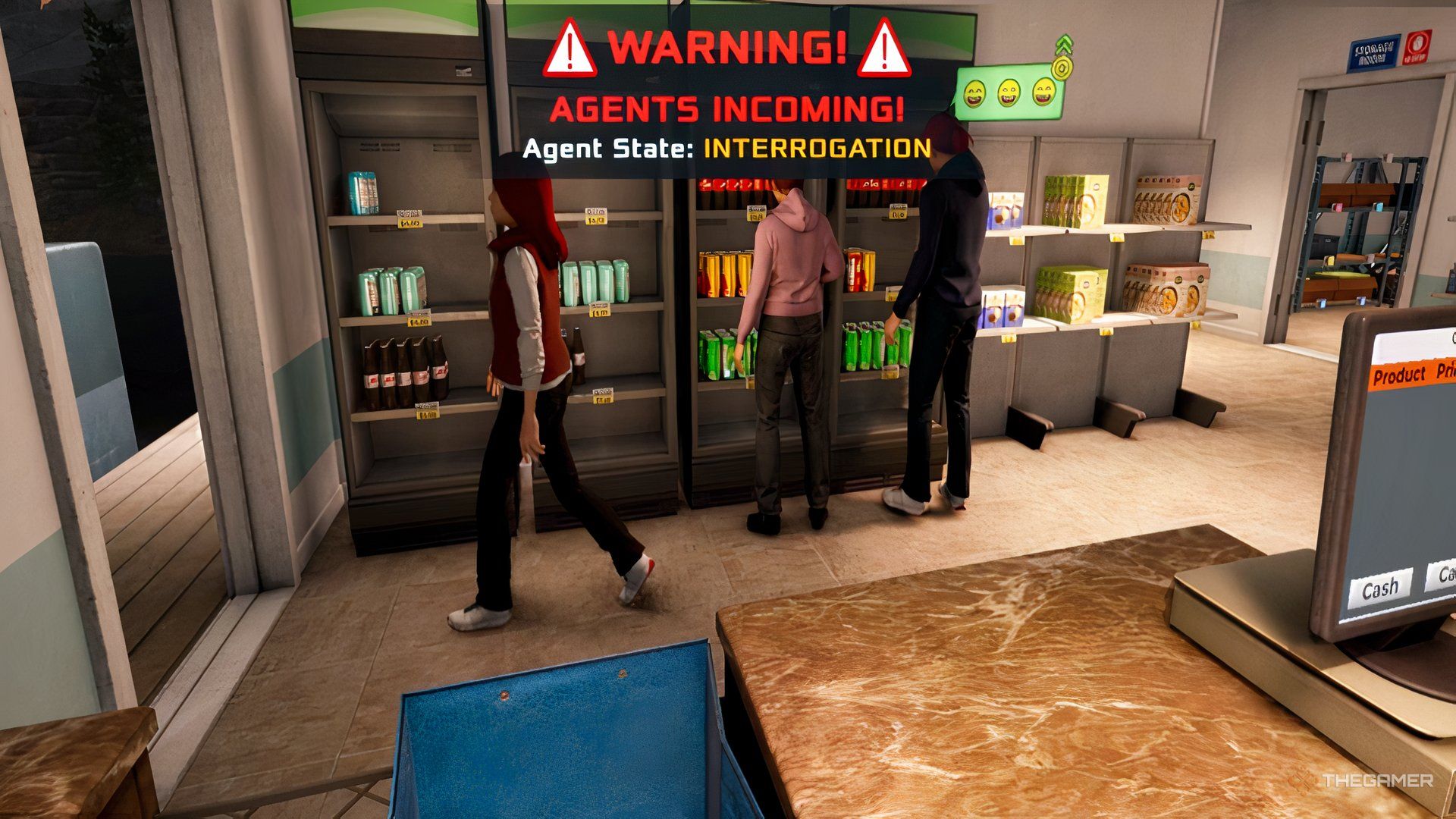 Если вы станете слишком подозрительным, агенты начнут неожиданно посещать заправку, чтобы допросить вас. Эти допросы приостановят то, что вы в данный момент делаете, и потребуют от вас выполнить простое задание – либо убедительно имитировать человеческий пук, моргание или схему дыхания.