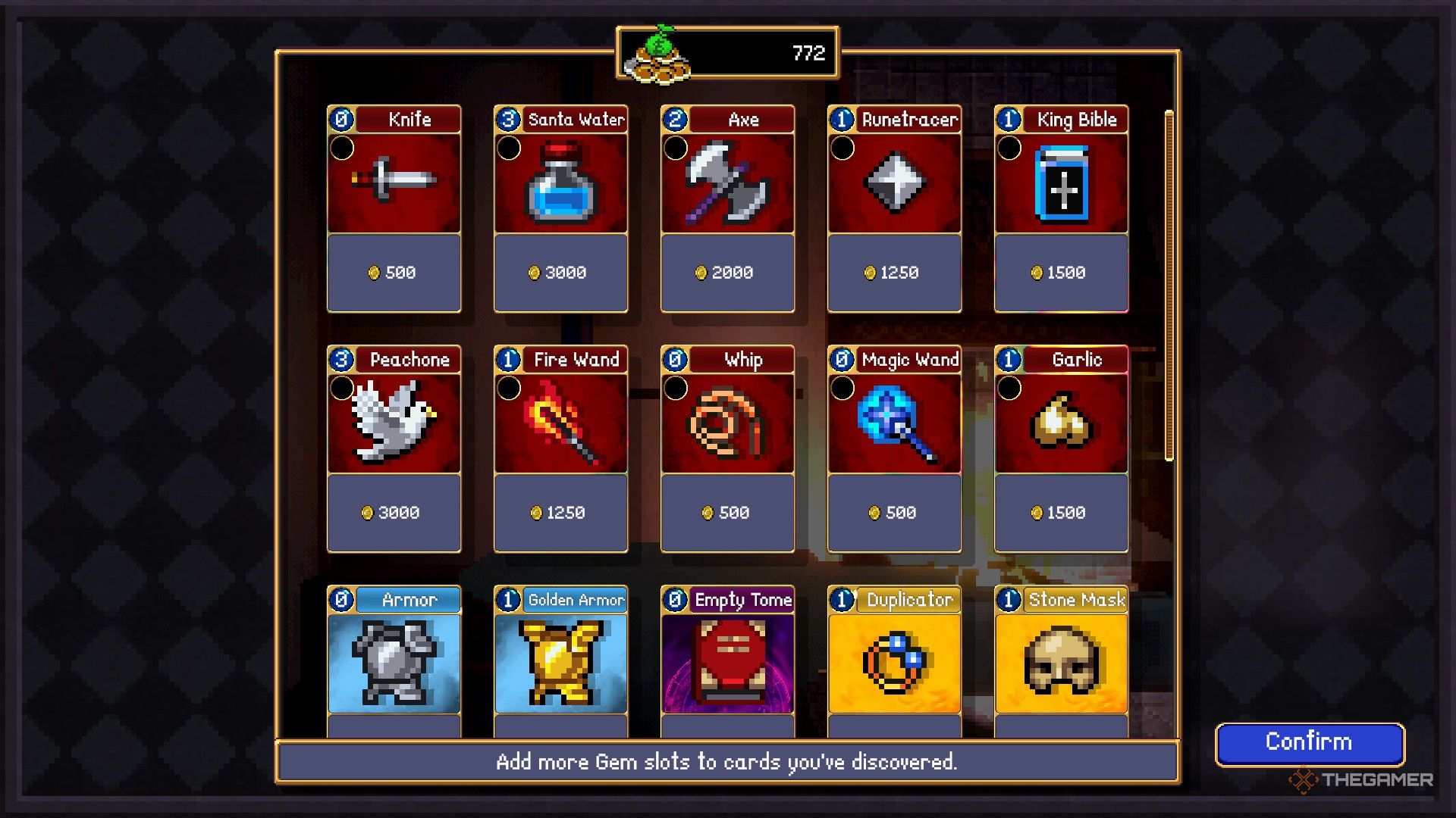 Кузнец действительно полезен, поскольку он позволяет добавлять слоты для Самоцветов к вашим картам, даже если они уже есть. Это позволяет таким картам, как Armor и Empty Tome, получить постоянный слот для Самоцвета, в то время как таким картам, как Knife и Magic Wand, можно добавить дополнительные слоты.