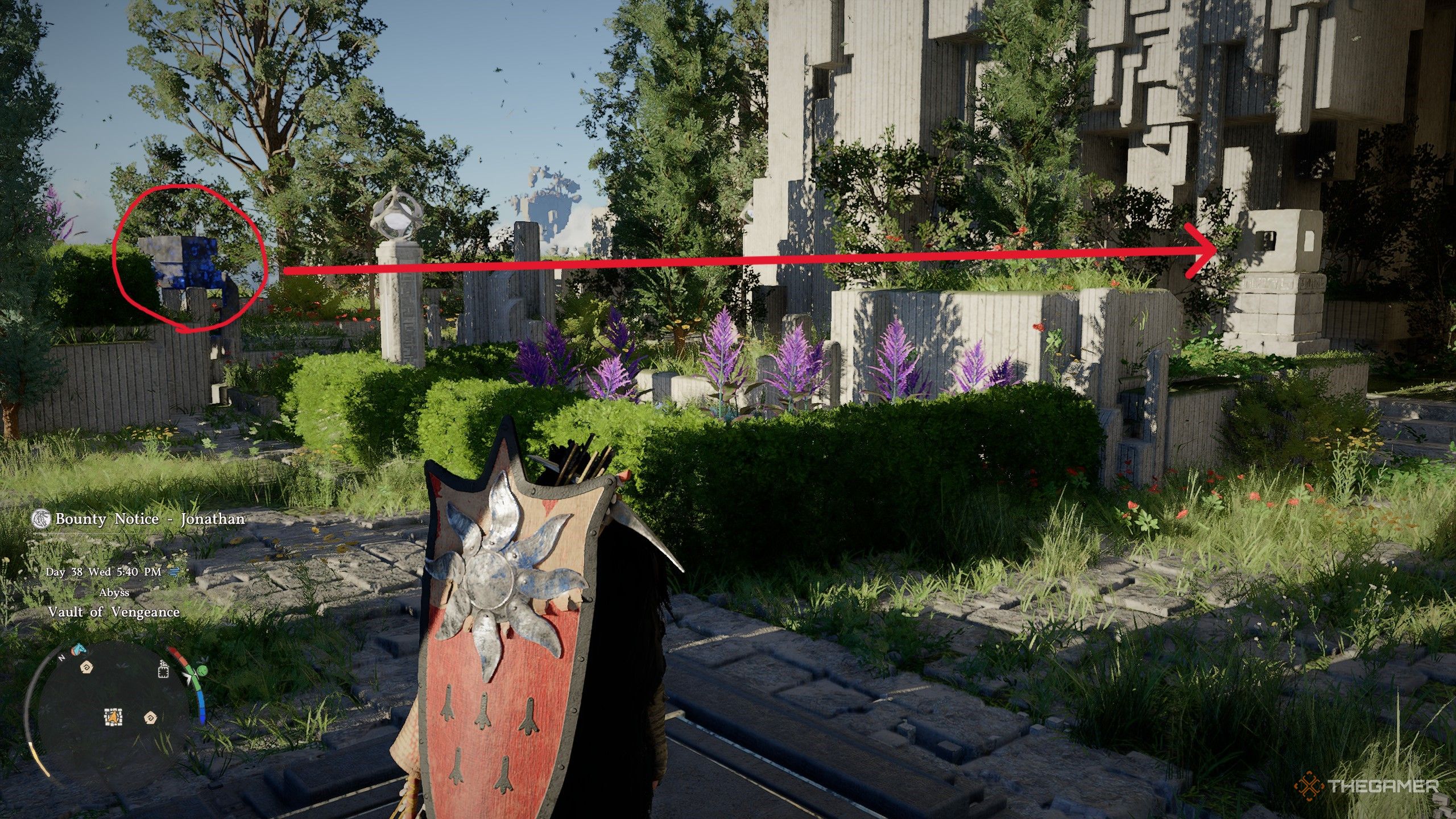 Впереди, на возвышенной платформе, вы найдете Артефакт Бездны справа и сундук, содержащий Ядро Бездны, слева. Нахождение этих предметов завершает головоломку. Если вы хотите продолжить исследование, вы можете пройти под треугольным воротами, чтобы создать больше платформ.
