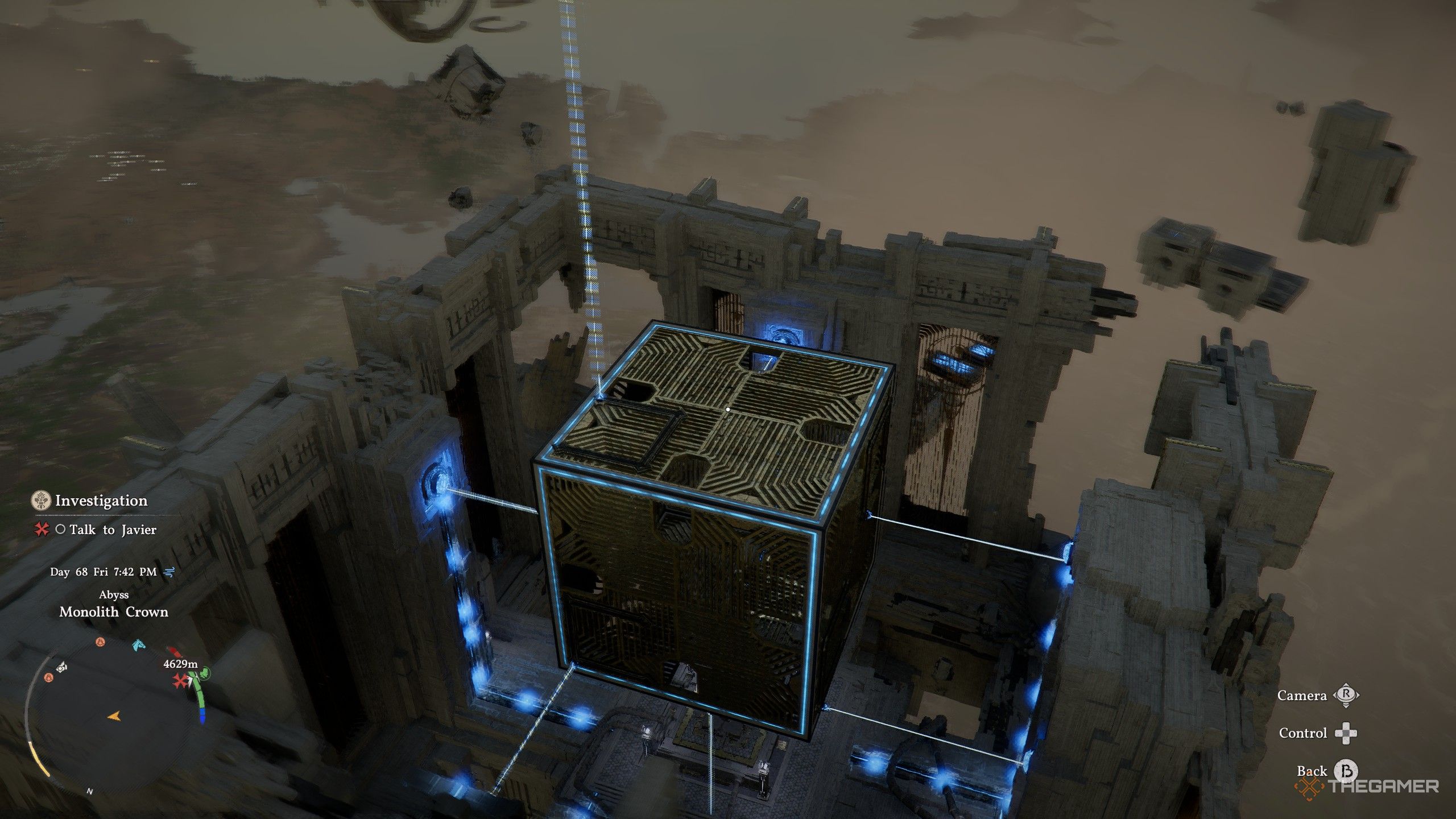 Активация переключателя завершит головоломку с Монолитной Короной и создаст Артефакт Бездны на алтаре. Это также откроет треугольный проход, позволяя вам вернуться к Полумесячному Небесному Мосту и продолжить своё путешествие.
