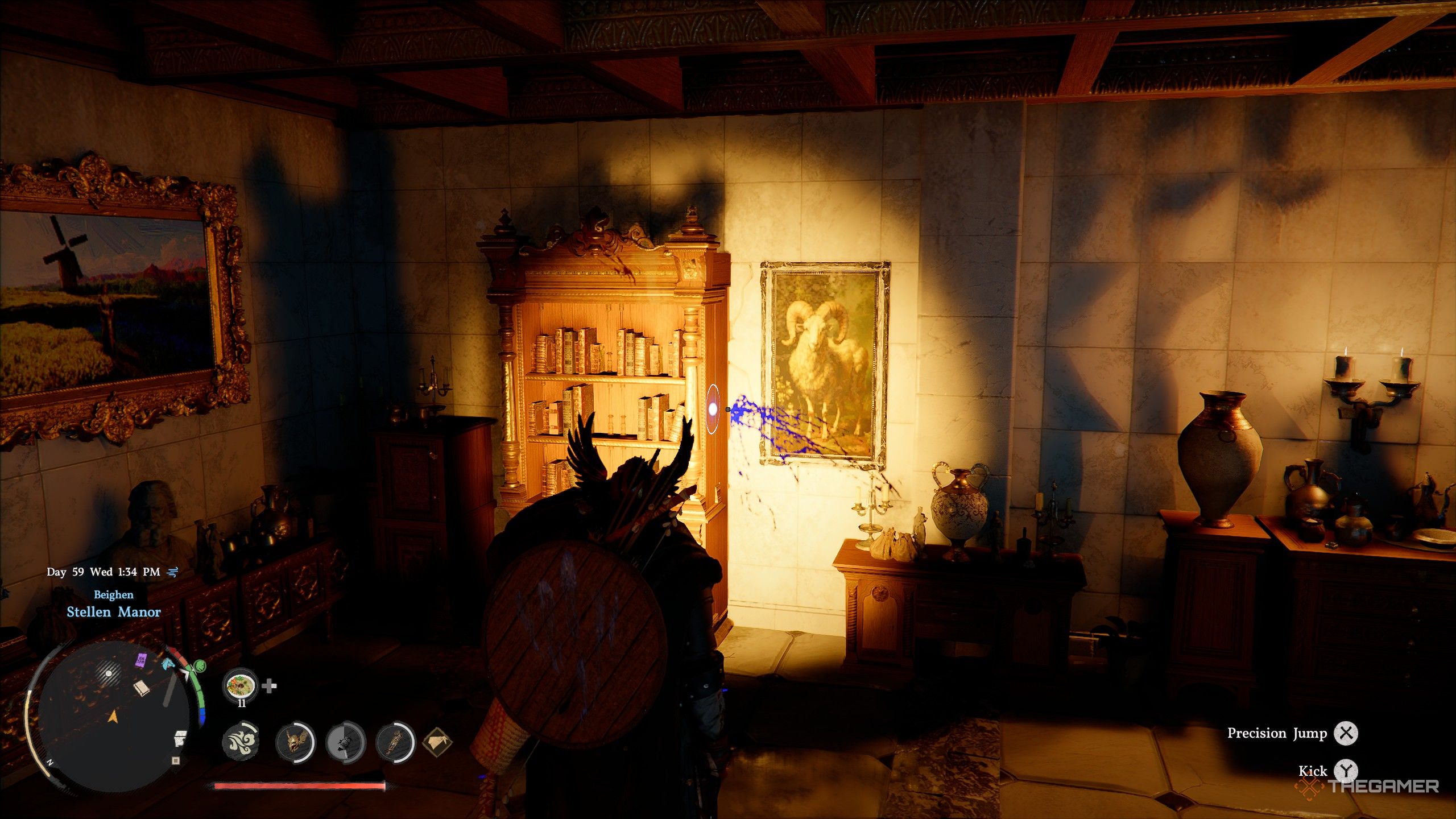 Когда вы достигнете поместья Стеллен, вам придется найти способ проникнуть внутрь, не используя главный вход, так как охранники вас остановят. К счастью, они все слепые, что означает, что вы легко можете перелезть через стену, открыть окно и незаметно проскользнуть внутрь.