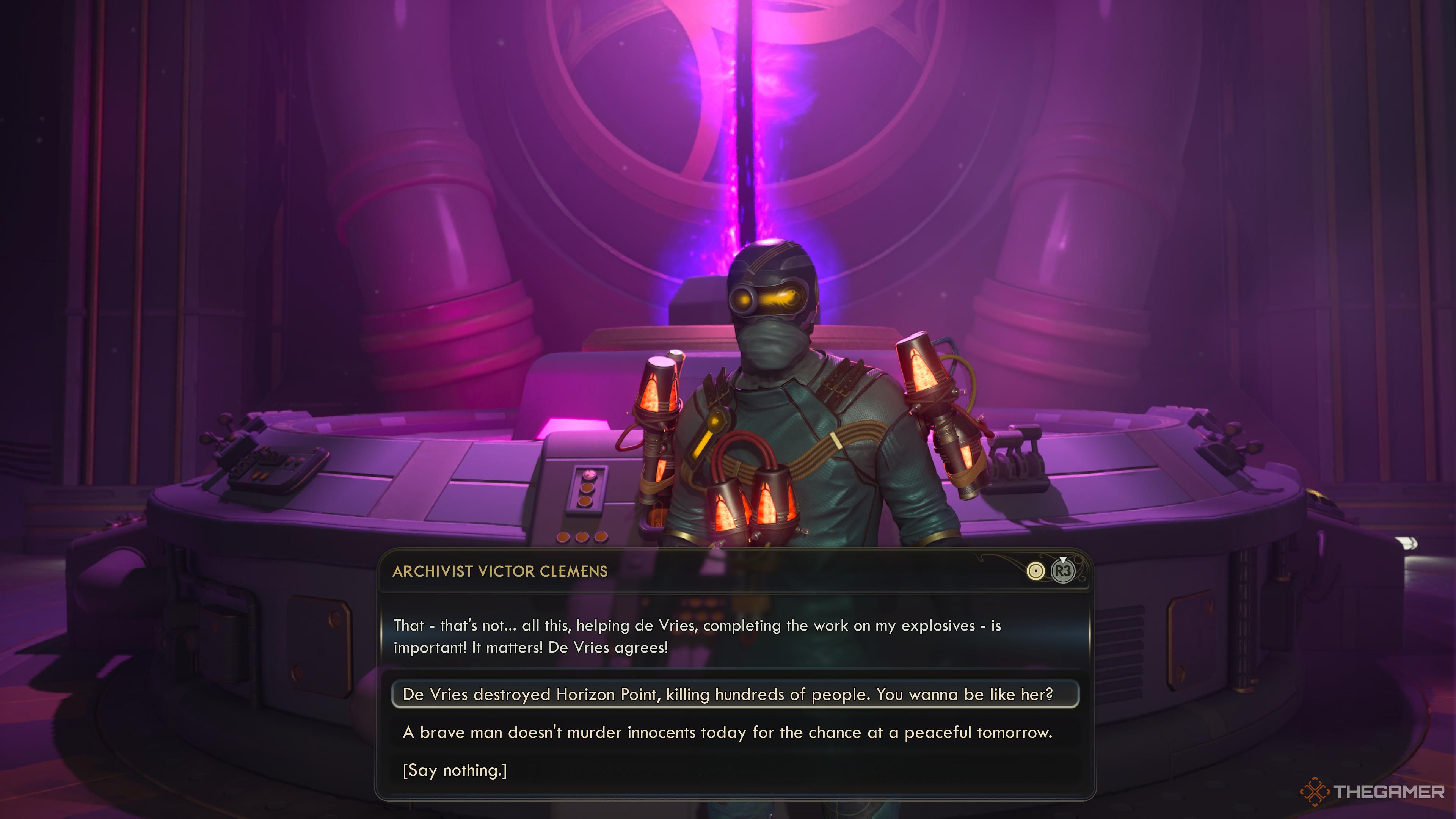 Когда вы войдете в главное здание, вы обнаружите нескольких членов Ордена. Наверху лестницы, рядом с лифтом, вы встретите Аббота Ньюэлла и его друга, Провидца Уайли – Аббот — тот, кто будет давать вам задания. Он хочет, чтобы вы расследовали две вещи: во-первых, Zyranium Manufactory VII, чтобы выяснить, почему ракета была запущена по Auntie’s Choice во время перемирия, а во-вторых, N-ray Range, чтобы вы могли поговорить с Виктором, который, как полагают, был связан с Огюстином де Врисом.