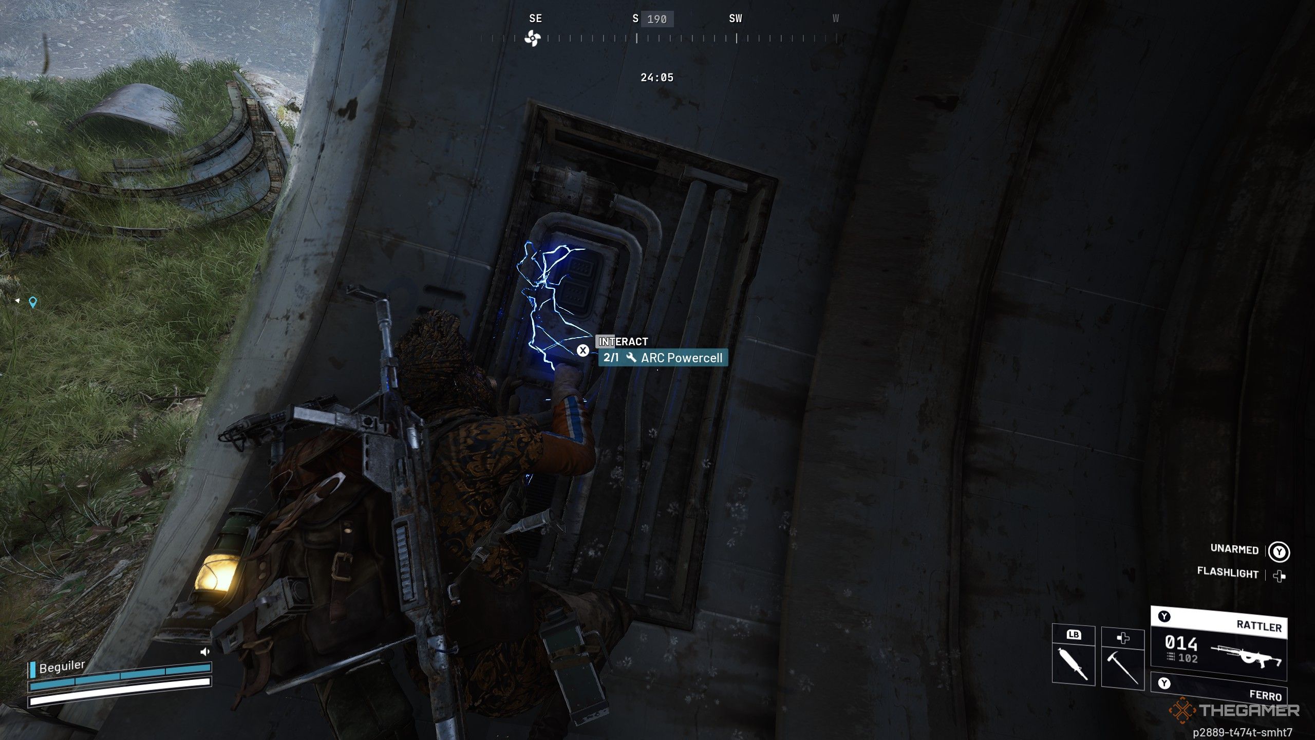 После того, как вы получите оба ARC Powercells, подойдите к синей электричеству и используйте панель с искрами. Когда вы используете один из своих Powercells, пламя начнет появляться в середине турбины. Подождите, пока пламя ненадолго прекратится, а затем быстро бегите к задней части турбины. Вы в безопасности, даже если пламя начнет появляться снова во время бега, если вы доберетесь до другой стороны!