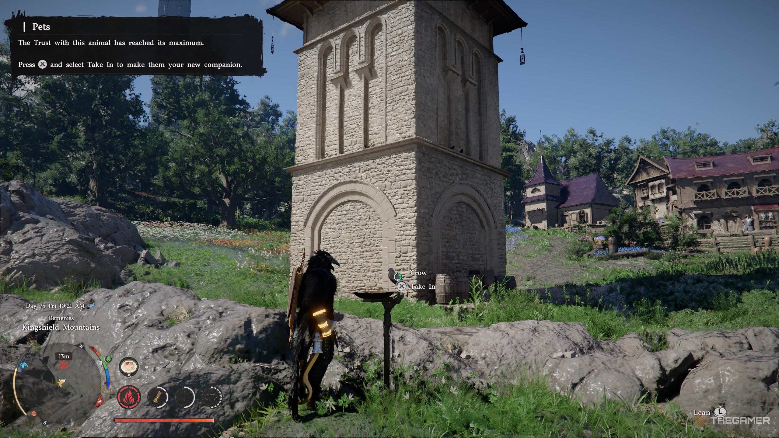 После установления прочной связи с птицей вы увидите опцию ‘Take In’ (Принять). Выбрав её, вы добавите птицу в свою коллекцию питомцев. Затем вы сможете получить доступ к своему инвентарю, чтобы выбрать и даже переименовать свою новую птицу. Как и другие питомцы, птицы будут автоматически собирать материалы с побежденных существ или при сборе ресурсов. Хотя это было бы здорово, эти птицы не оказывают никакой помощи в битвах.