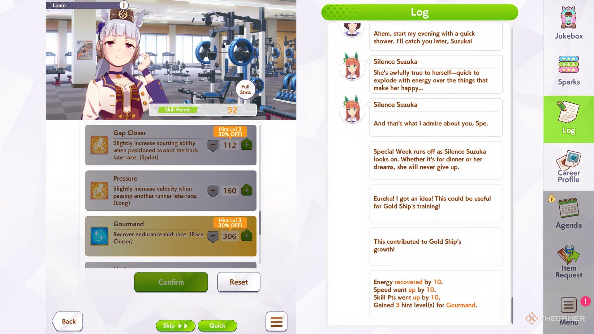 Gold Ship может быть легко обойден, если на нее оказывается давление, особенно в зависимости от ее местоположения на трассе. Улучшение ее ментальной выносливости поможет ей сопротивляться этому, а также усилит навыки, необходимые для победы. Не забудьте также развить ее способности к восстановлению, чтобы у нее было достаточно энергии для сильного финиша.