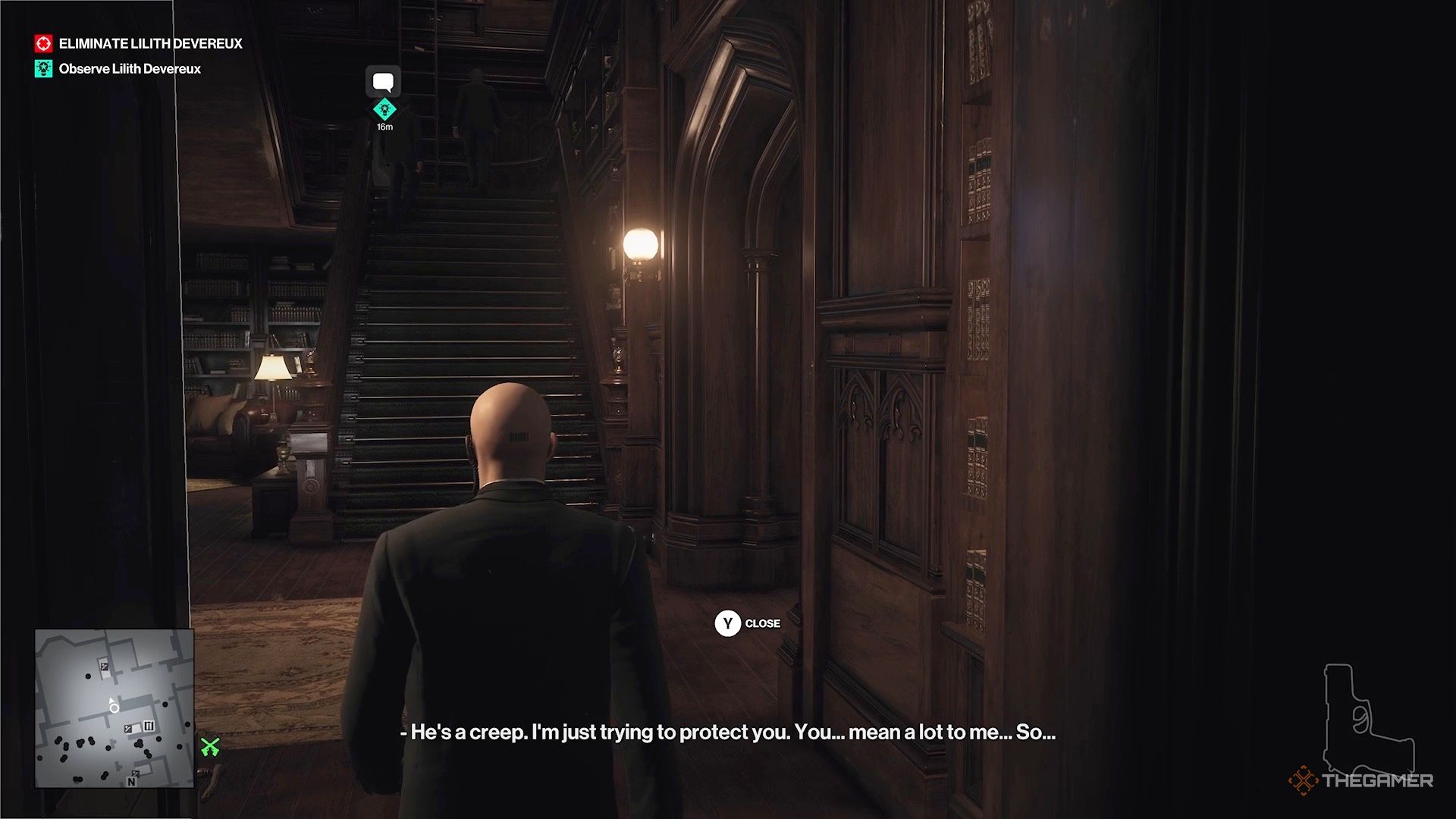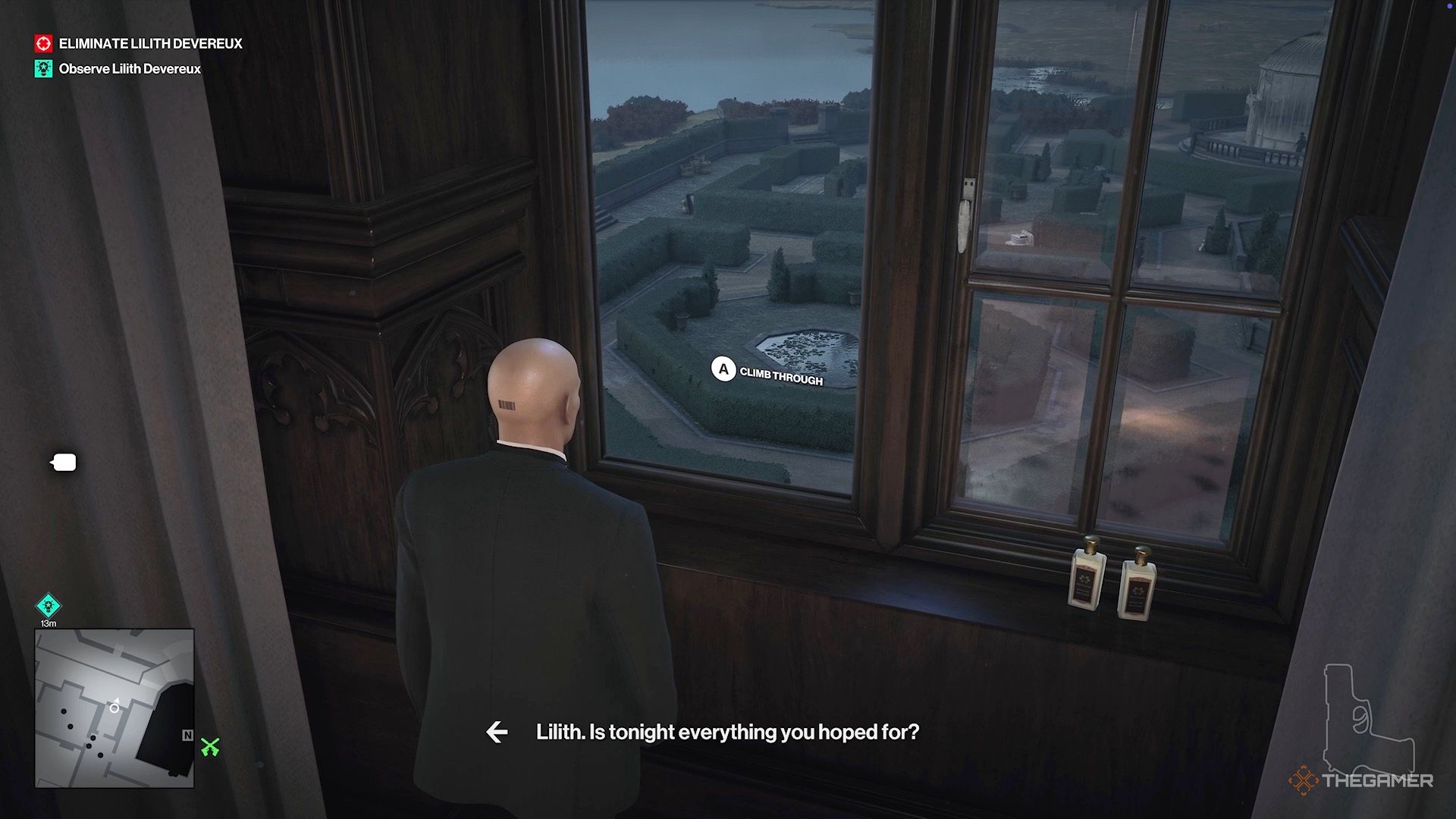 Если вы всё спланировали правильно, Лилит будет близко к комнате напротив после того, как вы покинете Закари Карлайла, или уже будет в ней. Если это так, подойдите к балкону слева и осторожно подойдите к окну снаружи её комнаты, чтобы подслушать разговор.