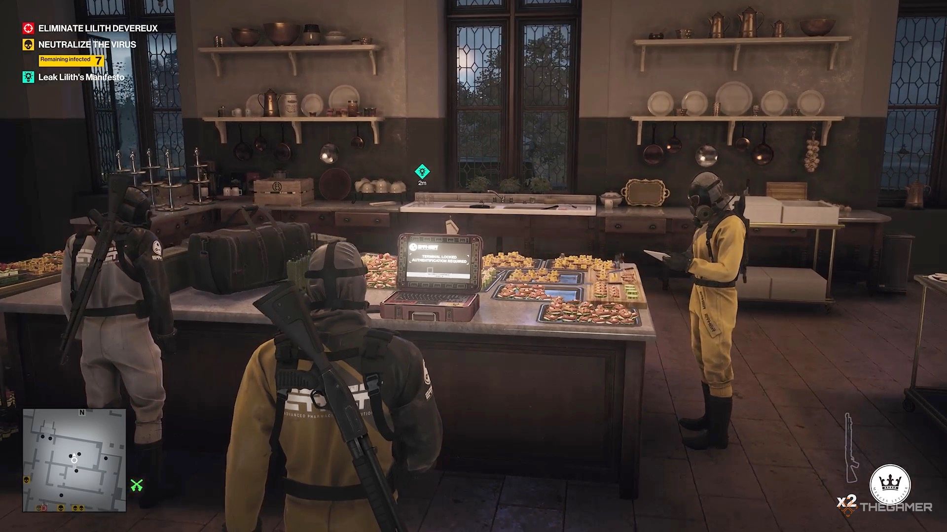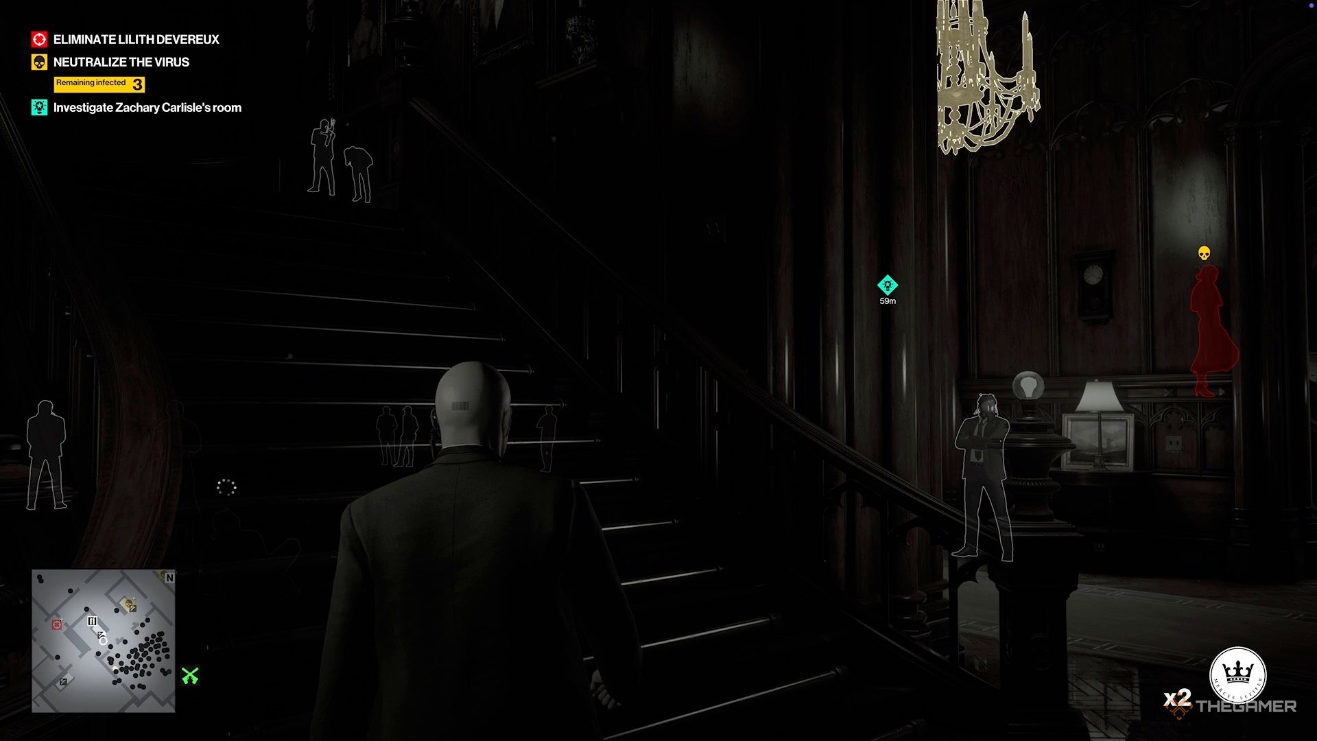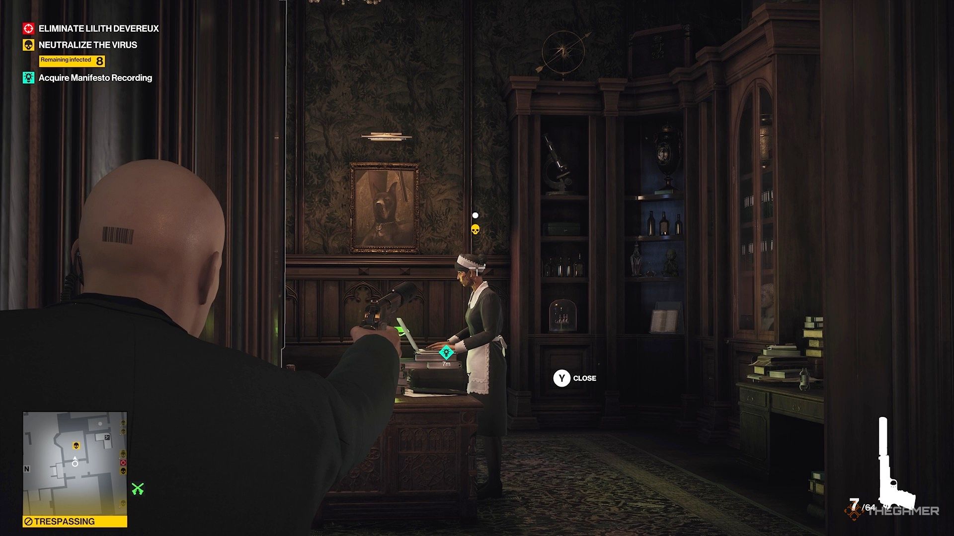 Вы обнаруживаете, что она оставила доказательства своих преступлений на компьютере в той комнате. Как только она и её телохранители уйдут, зайдите внутрь. Но прежде чем получить данные, убейте заражённую горничную, которая тоже там находится, и спрячьте её тело в сундук.