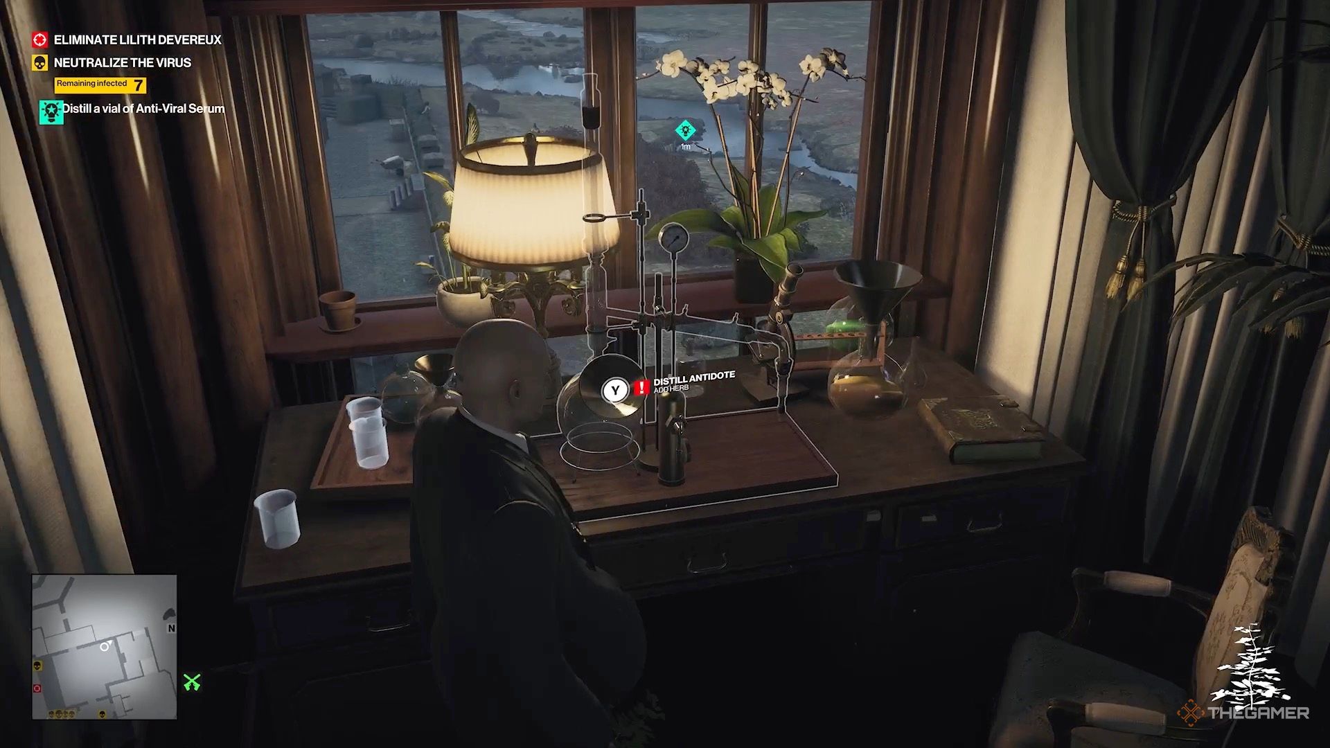 Возьмите обе травы, пройдите направо от патио-дверей и поместите их в научный набор, чтобы создать противоядие.