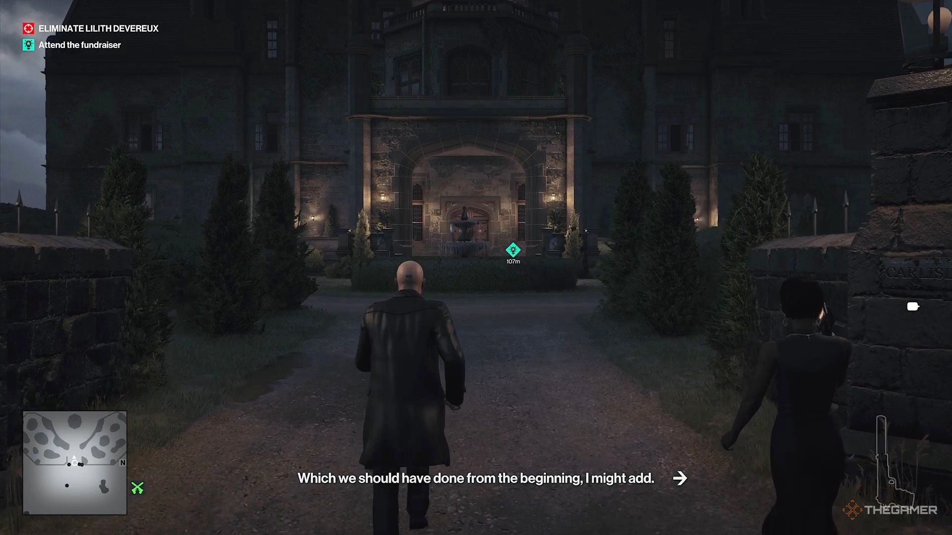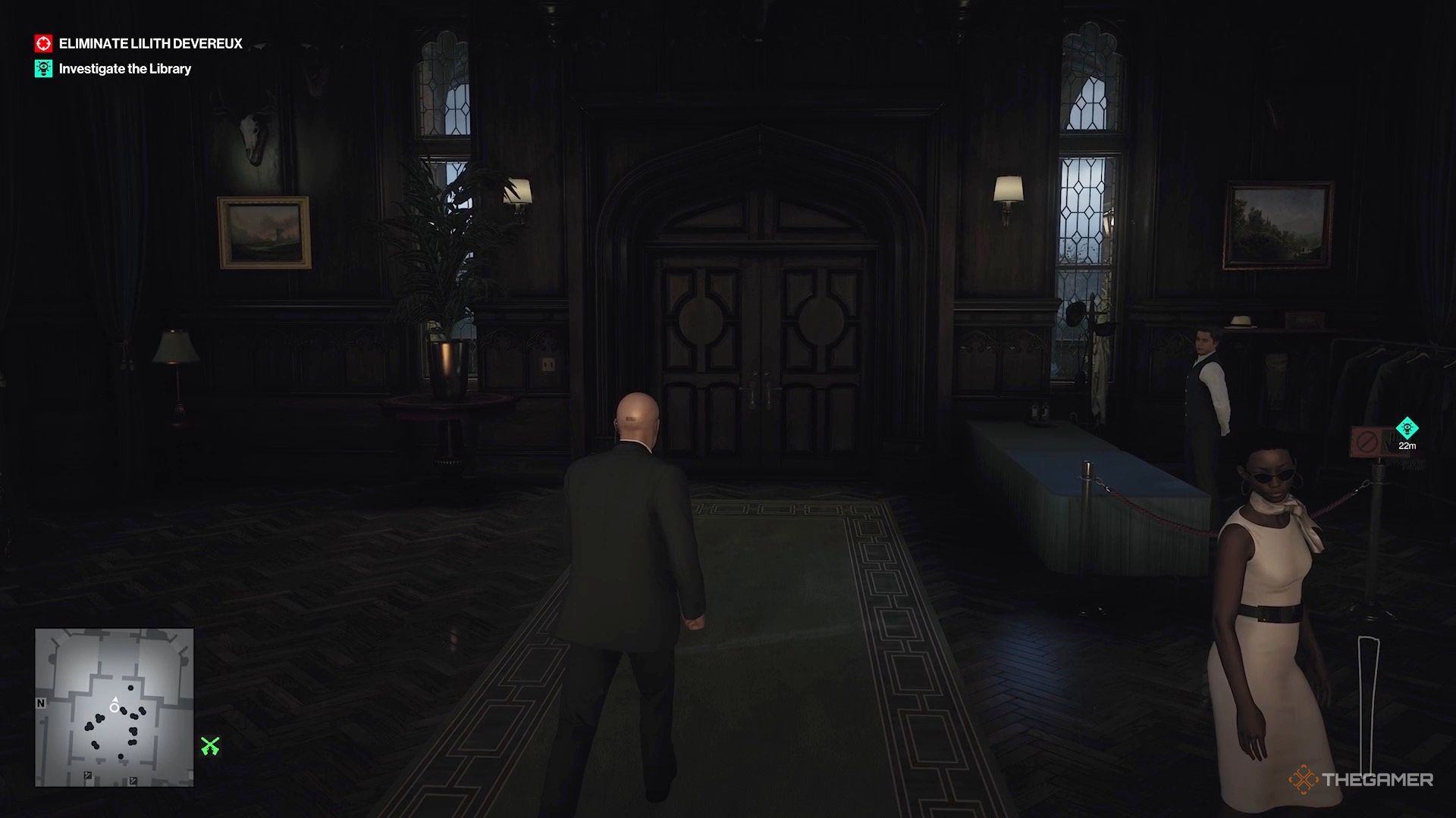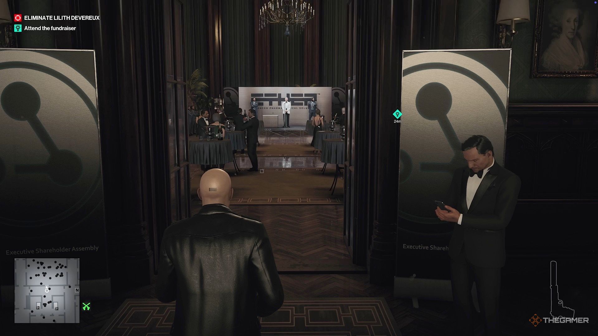 Как только вы начнете играть за Агента 47, войдите в главное здание через главный вход и присоединитесь к вечеринке, происходящей в задней части.