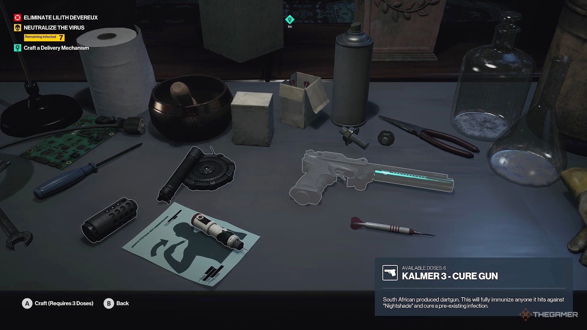 Как только вы получите предмет, повернитесь и поищите белый стол. Возьмите с него Kalmer 3-Cure Gun и Injectible Cure, затем используйте любые оставшиеся дозы, чтобы перезарядить свои дротики.