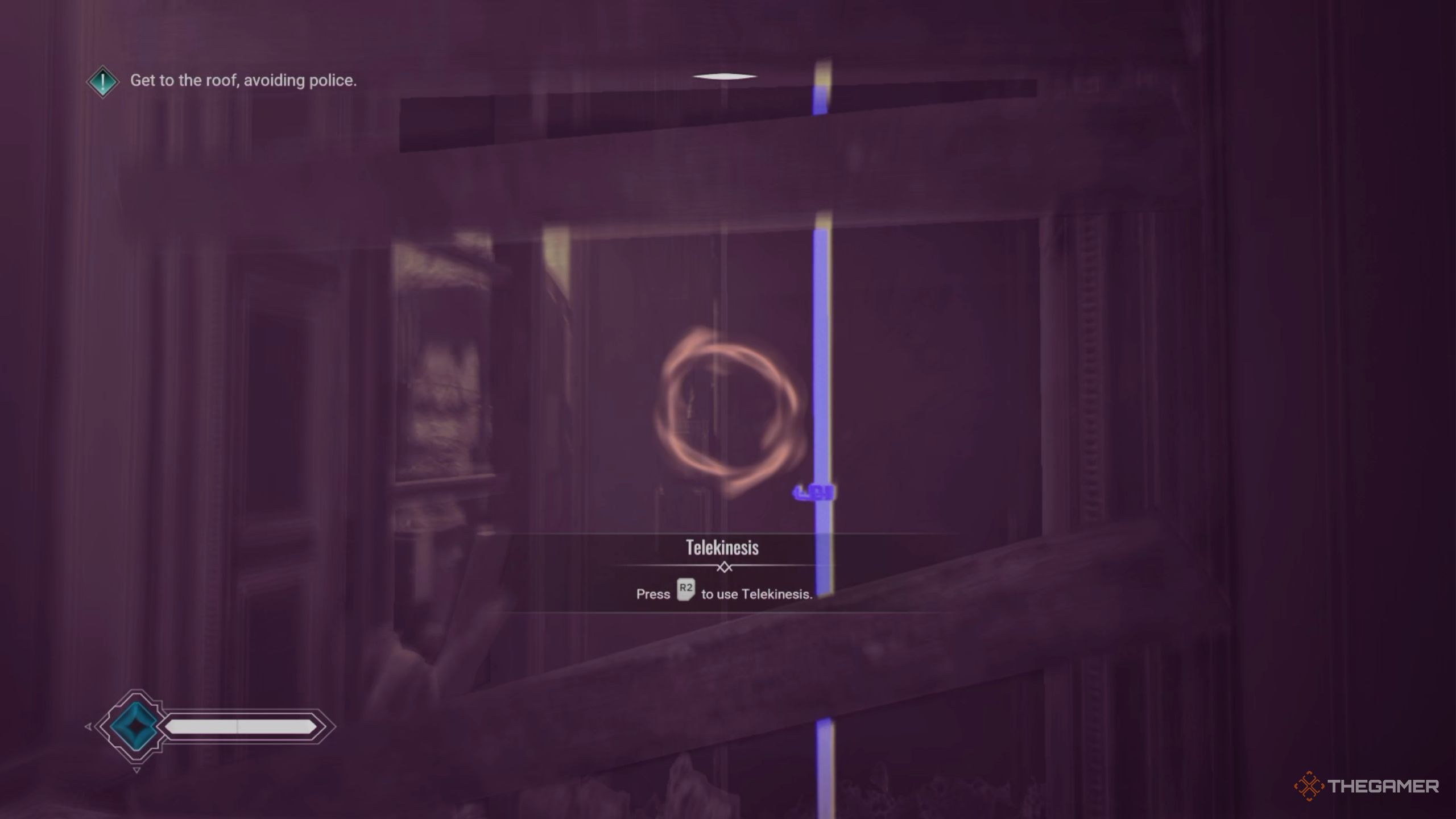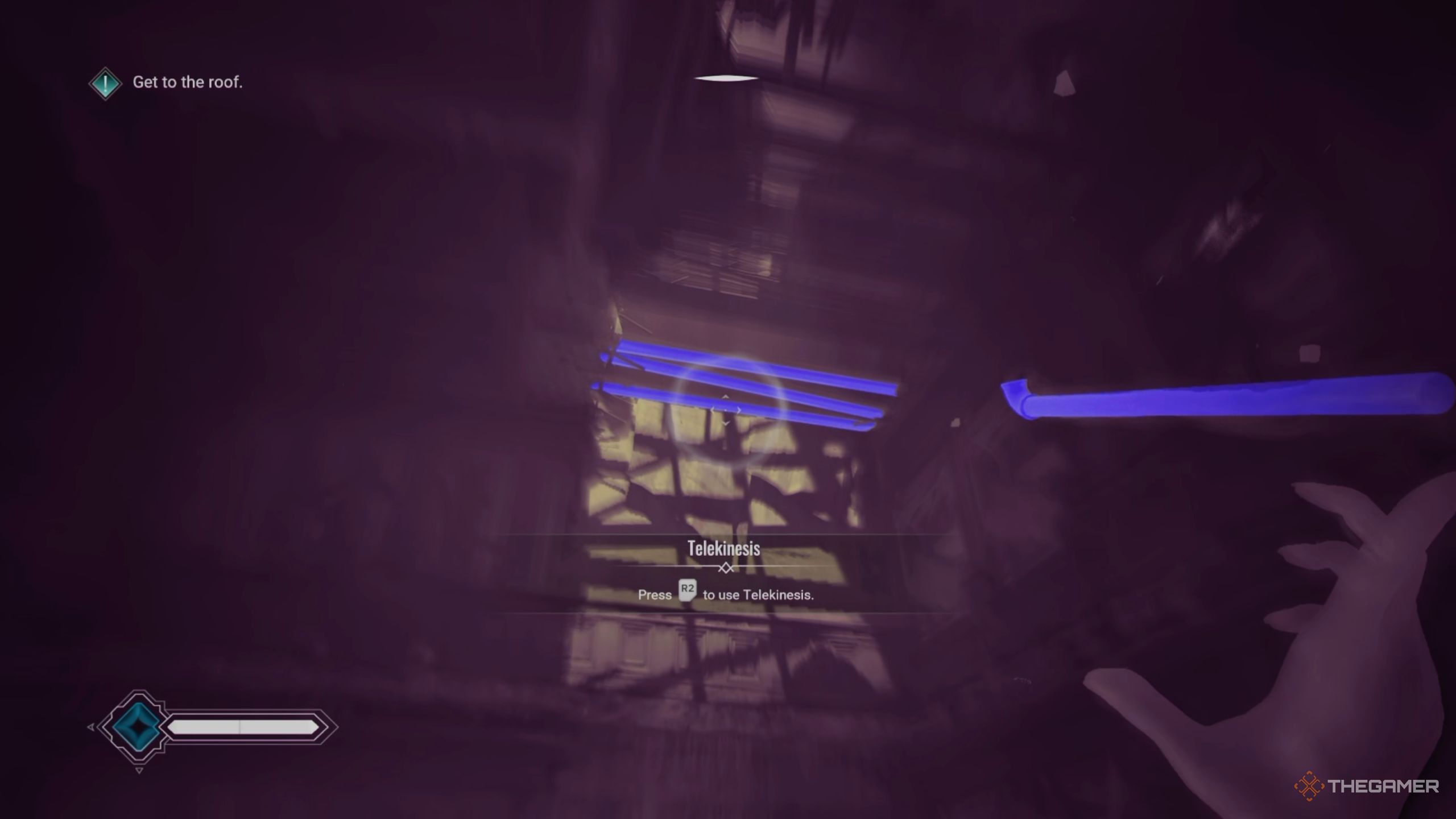 Чтобы продолжить, используйте своё особое зрение, чтобы найти белые объекты поблизости. Используйте свои телекинетические способности, чтобы притянуть их ближе, а затем бросьте их в стену слева – это отвлечёт охранника. Как только они будут отвлечены, направляйтесь направо и продолжайте прямо, затем снова поверните направо, чтобы войти в небольшую комнату.
