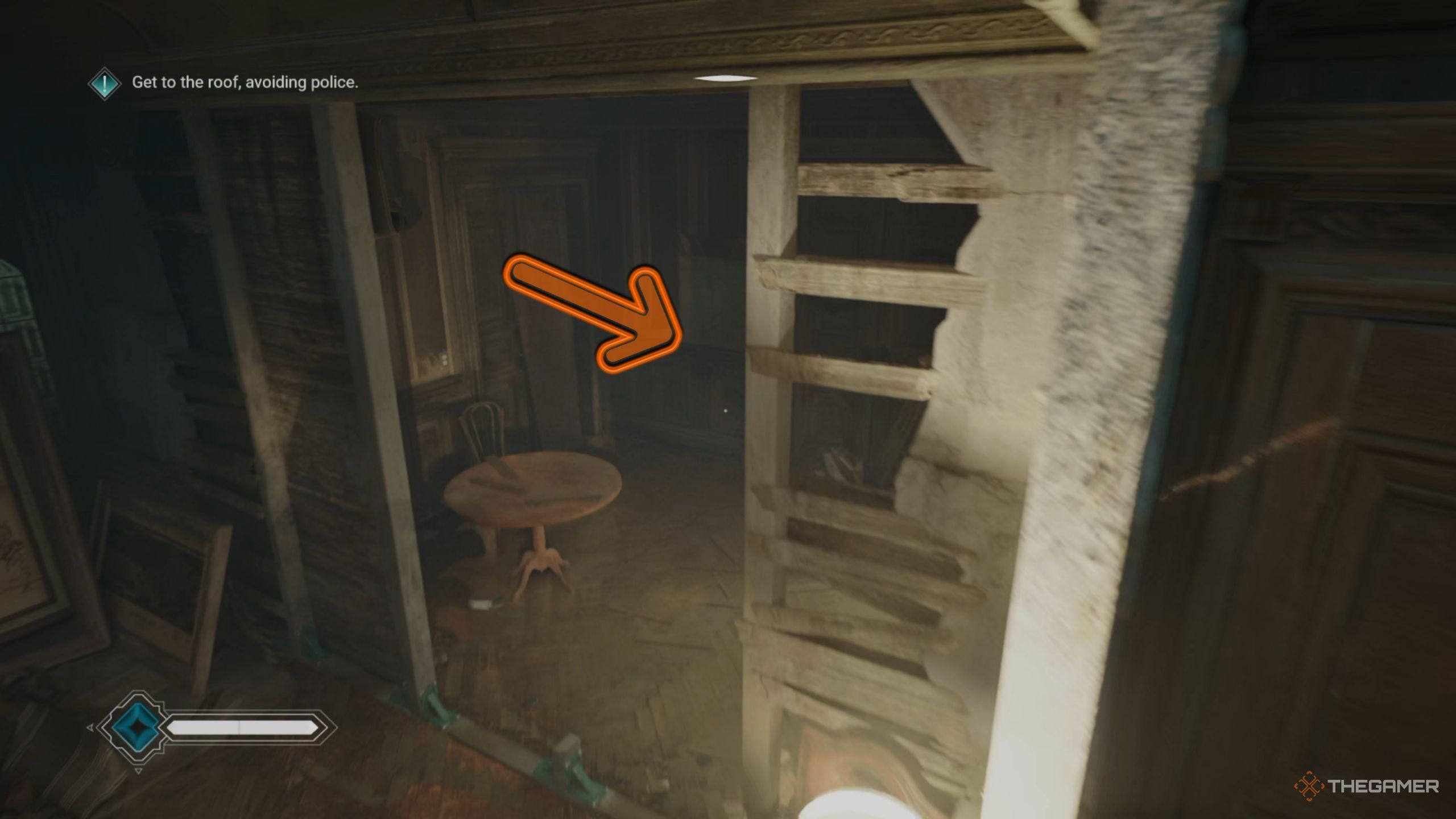 После победы над вторым офицером просто продолжайте следовать по пути, пока не дойдете до более просторной комнаты с лестницей. Использовать лестницу вы не сможете – вместо этого вам нужно будет запрыгнуть на ящики, а затем перепрыгнуть через отверстие в углу, чтобы достичь верхнего уровня. Продолжая движение по коридору мимо этого отверстия, вы запустите кат-сцену, где встретитесь с Фабьеном.