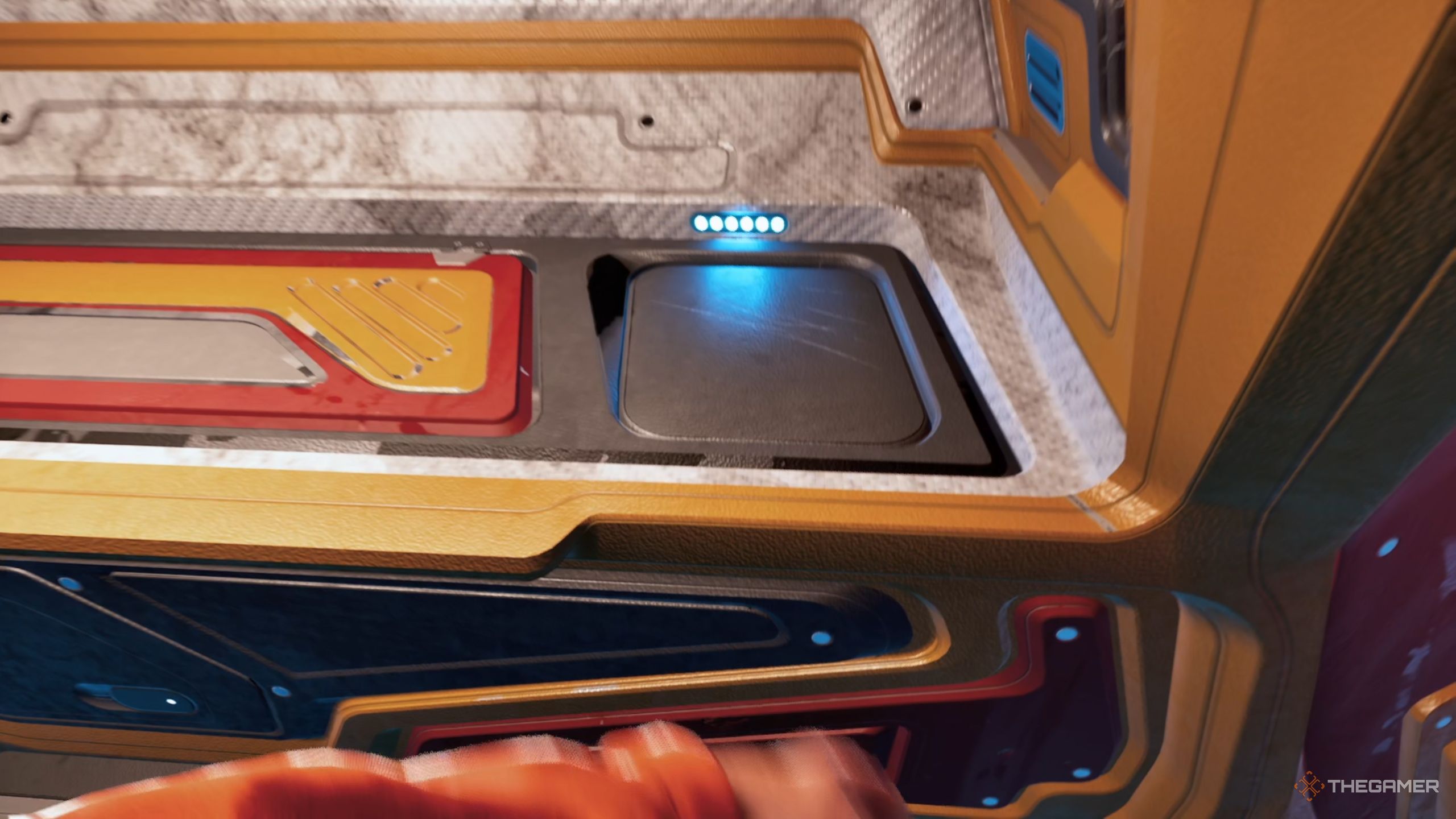 Вам нужно разместить каждый предмет на столе рядом с Suit-O, прежде чем собирать следующий. Как только вы соберете все необходимое, подойдите к выходу и осторожно возьмите чип с спины охранника, пока он не смотрит. Затем соберите оружие и вставьте чип Suit-O в него.