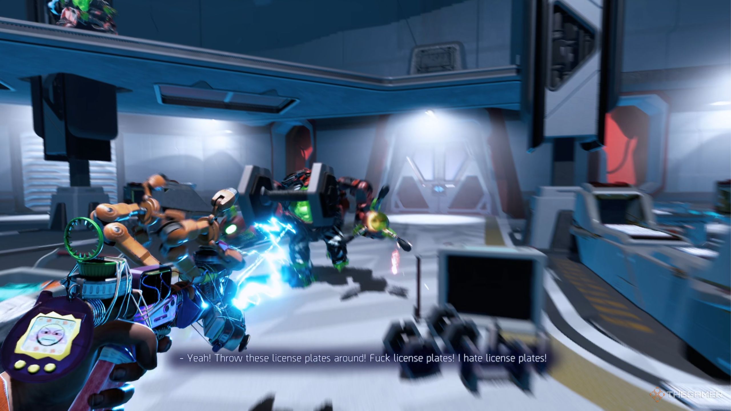 - Используйте молот на руках Suit-O, чтобы получить руки для оружия.