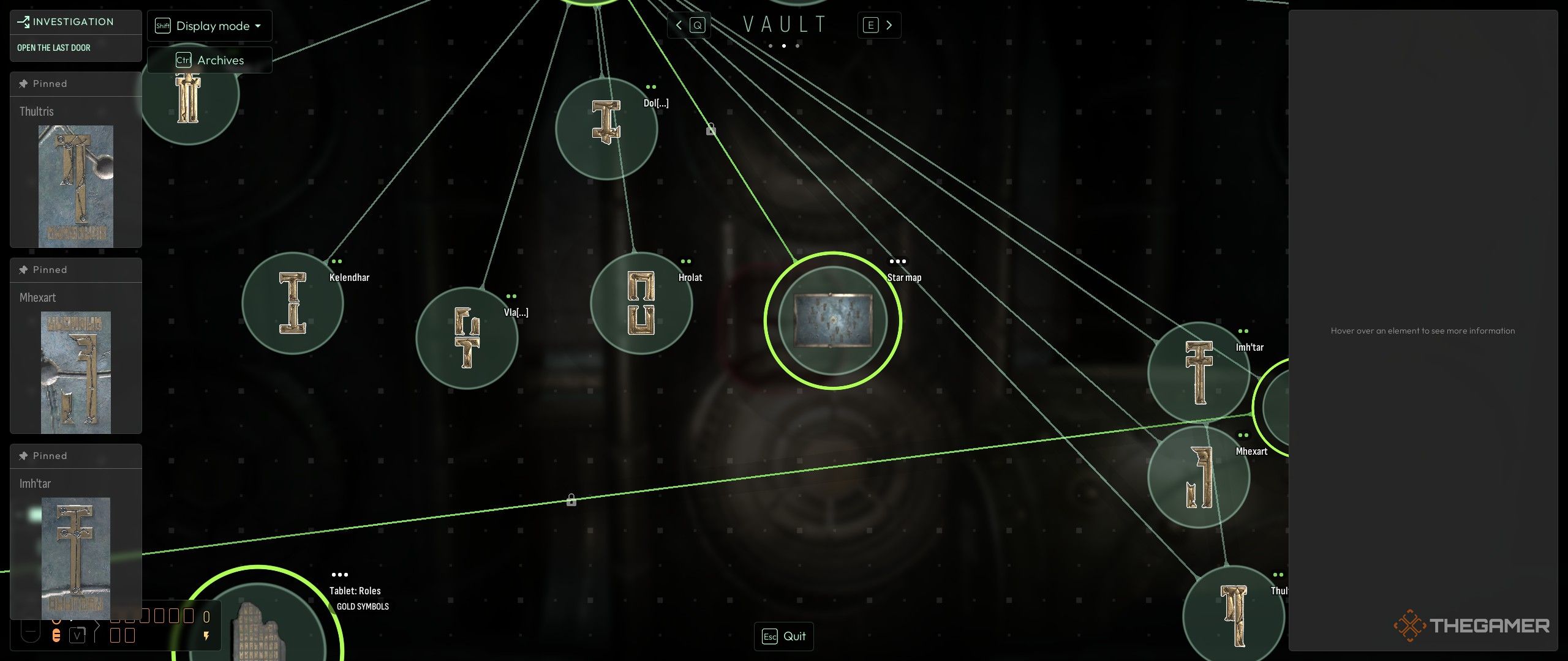 - Мавзолей Срочности (внизу правой лестницы): Поместите звезду на столб, чтобы войти в реконструкцию Ит, на этот раз Экстренной. Взаимодействуйте с картой, чтобы разблокировать дедукцию ‘Какие созвездия могут соответствовать этим именам?’ — решите ее, связав две карты в Хранилище. Это связывает каждый символ созвездия с именем Мастера. Здесь также открывается табличка с отчетом о сессии: ‘Как называется Мастер Науки?’