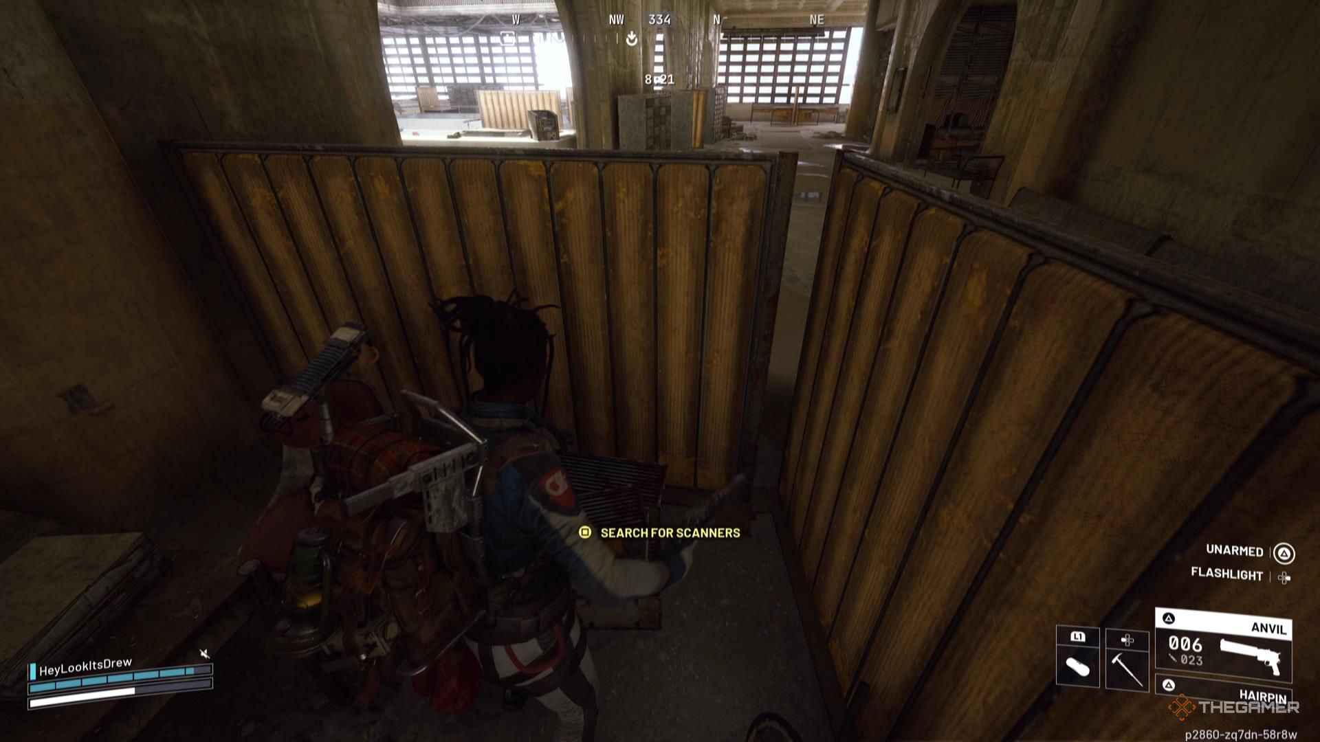 Вы найдёте устройство, которое вам нужно, справа от лестницы, возле жёлтых разделителей в углу. Используйте его, чтобы продолжить, и если у вас ничего нет в безопасном кармане, это самый безопасный способ пройти.