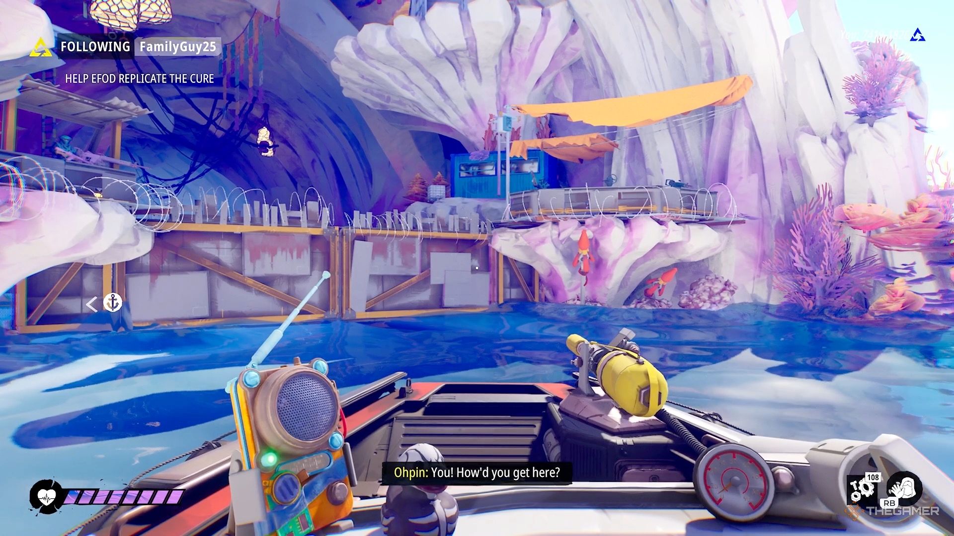 Если они не пустят вас войти обычным способом, вы можете пойти налево и перепрыгнуть через пандус, чтобы добраться до Ocean Blessing.
