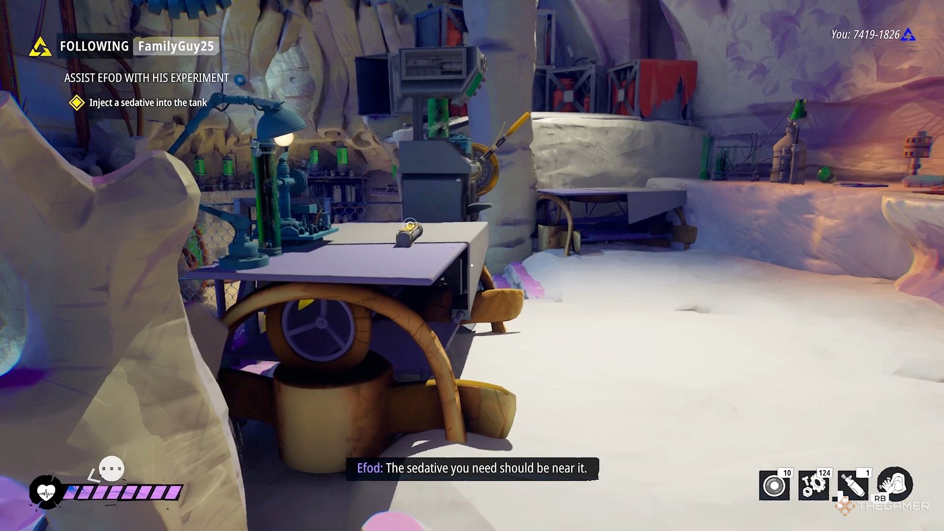 Поднимитесь к пространству рядом с диффузором, затем спуститесь в следующую небольшую область. Там вы найдете еще два успокоительных – один в шкафчике, а другой на столе, спрятан за коробками.