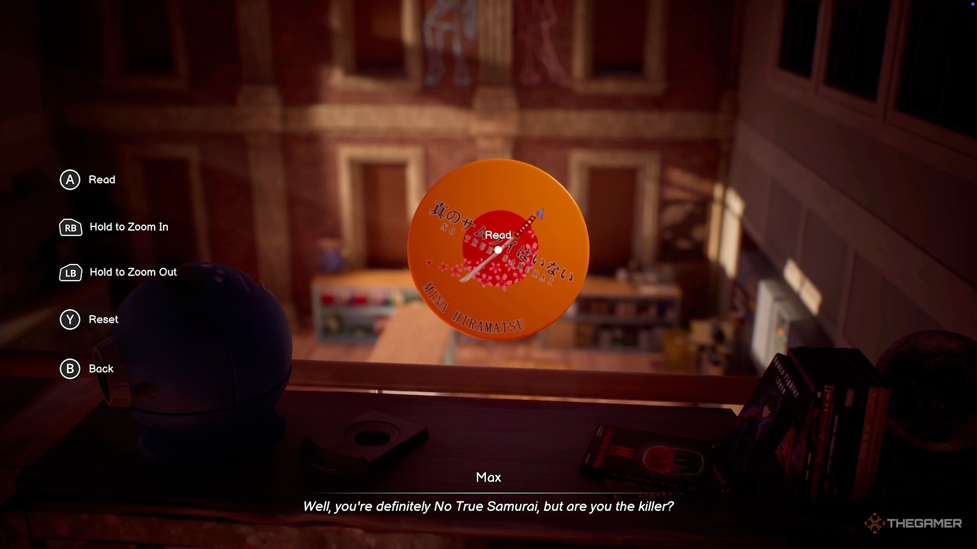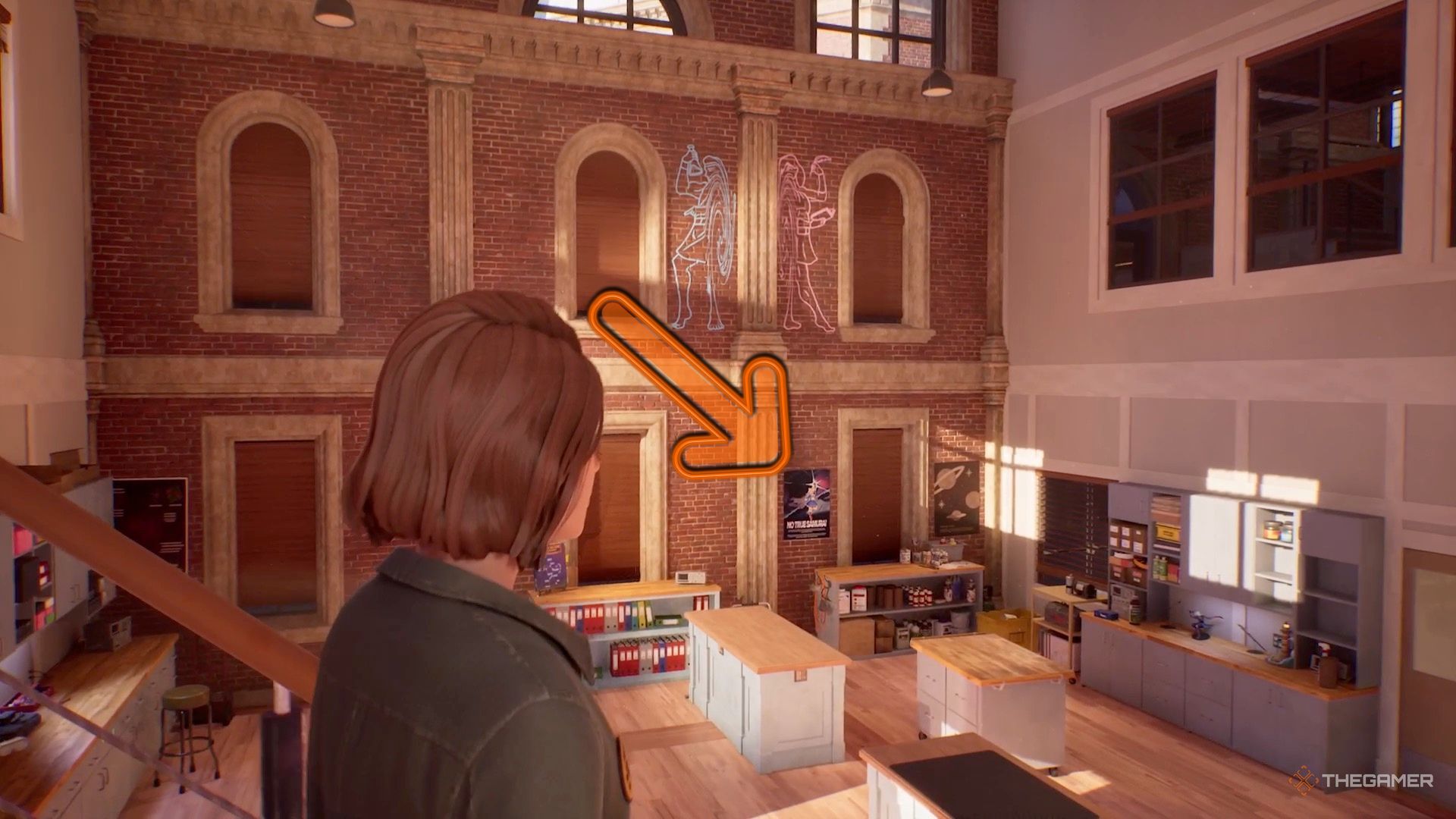 Постер находится напротив Моисея, висит на кирпичной стене рядом с краской и лестницей. На нём изображена фраза ‘No True Samurai’, и, взглянув на него, вы получите подсказки о сюжете.