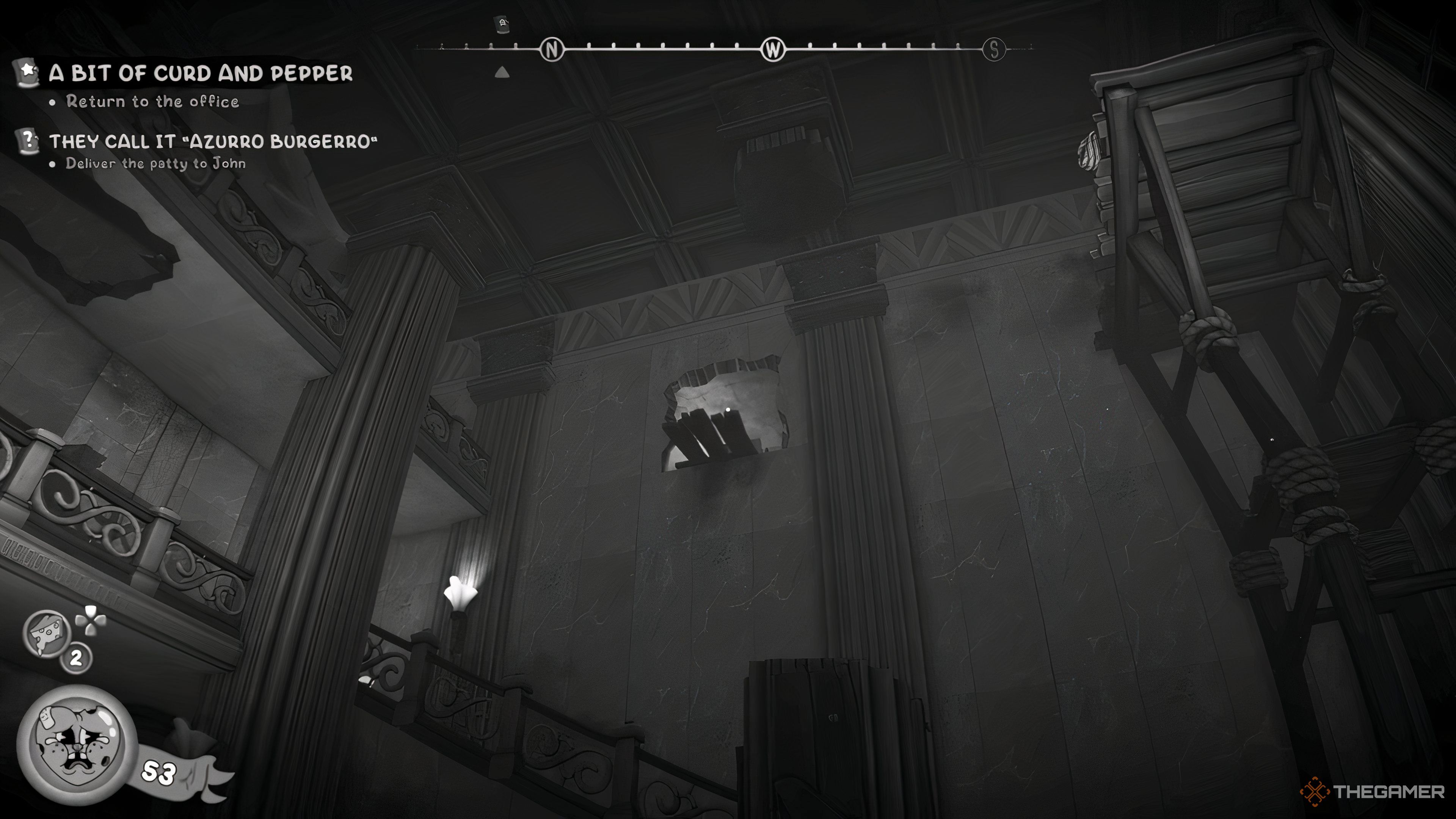 Если вы посмотрите вверх, вы заметите дыру в стене, из которой торчит кусок дерева. Используйте когти-крюки в комнате, чтобы добраться до платформы рядом с дырой и перепрыгнуть. Здесь можно найти комикс, а для дополнительной работы Джона обязательно поищите дыру в полу, которая ведёт к лестнице, украшенной скелетами.