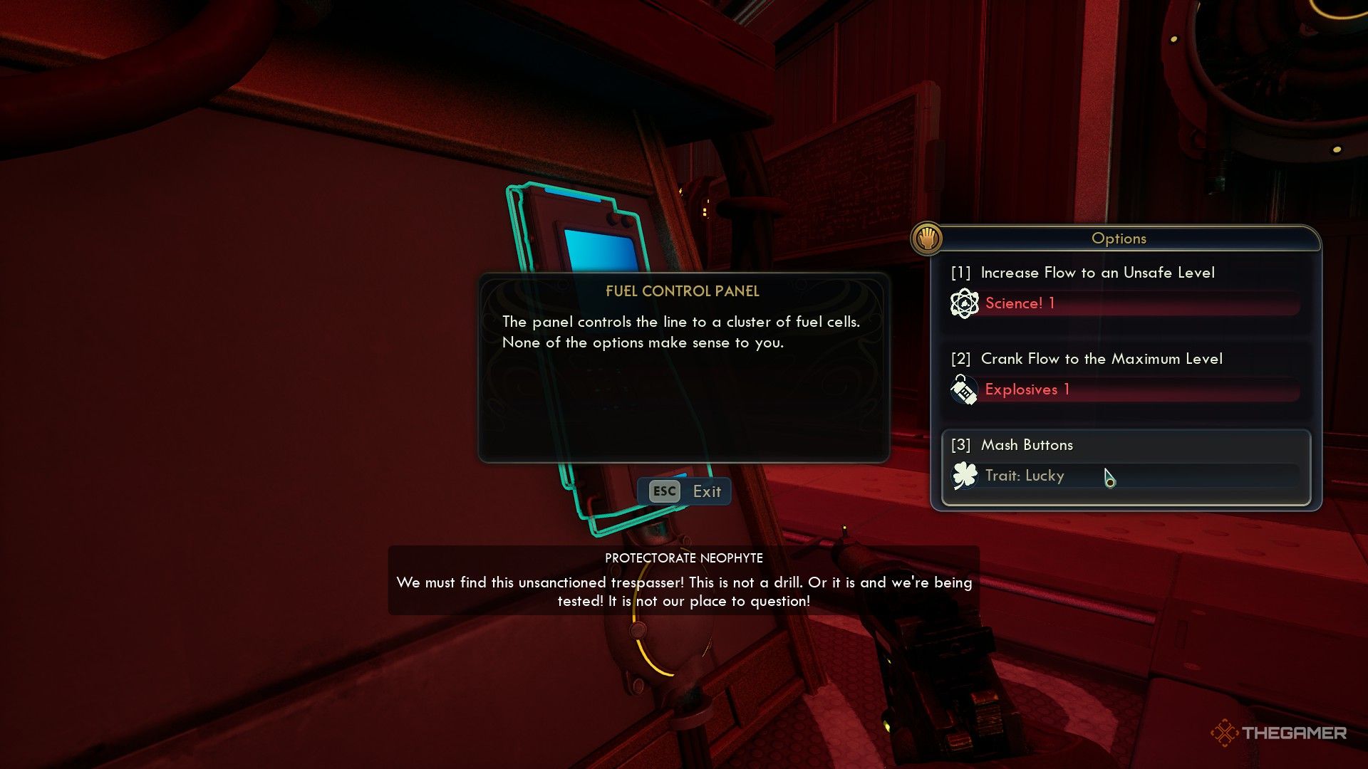 В конечном итоге мост опустится, позволяя вам продолжить. В следующей комнате будут враги, но вы можете либо проскользнуть мимо них, либо уничтожить их возле панели управления топливом. Для этого вам понадобится талант «Счастливчик», или очко навыка в Науке или Взрывчатке.