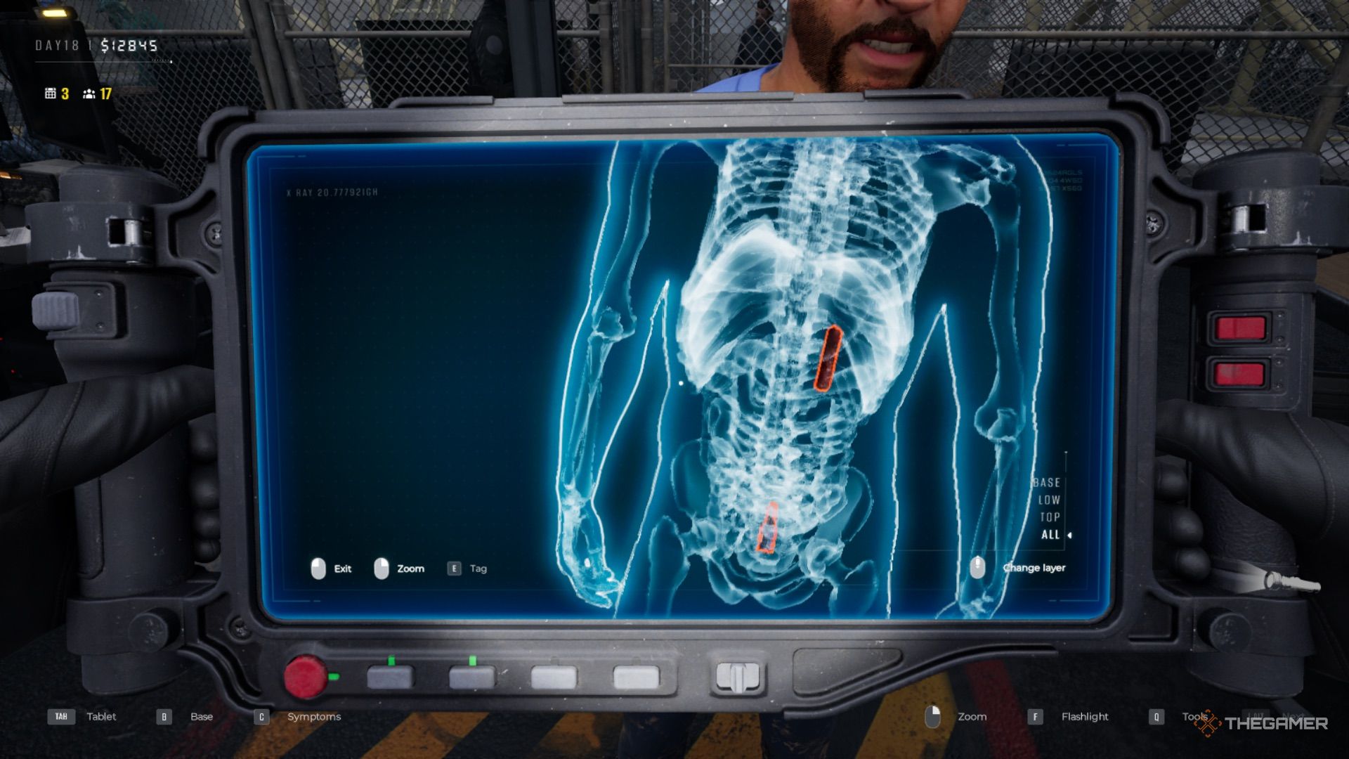 Окей, так что выжившие будут всерьёз пытаться прятать вещи внутри себя – мы говорим о местах, в которые вы даже не поверите! Чтобы поймать их, мне нужно разблокировать рентгеновский сканер. Как только у меня он будет, я смогу сканировать каждого выжившего и искать что-нибудь подозрительное. Они будут пытаться прятать вещи везде – в ягодицах, в животах, даже во рту! Так что я должен помнить, чтобы сканировать всё их тело, включая головы, с помощью рентгеновского аппарата, чтобы найти всё, что они пытаются пронести.