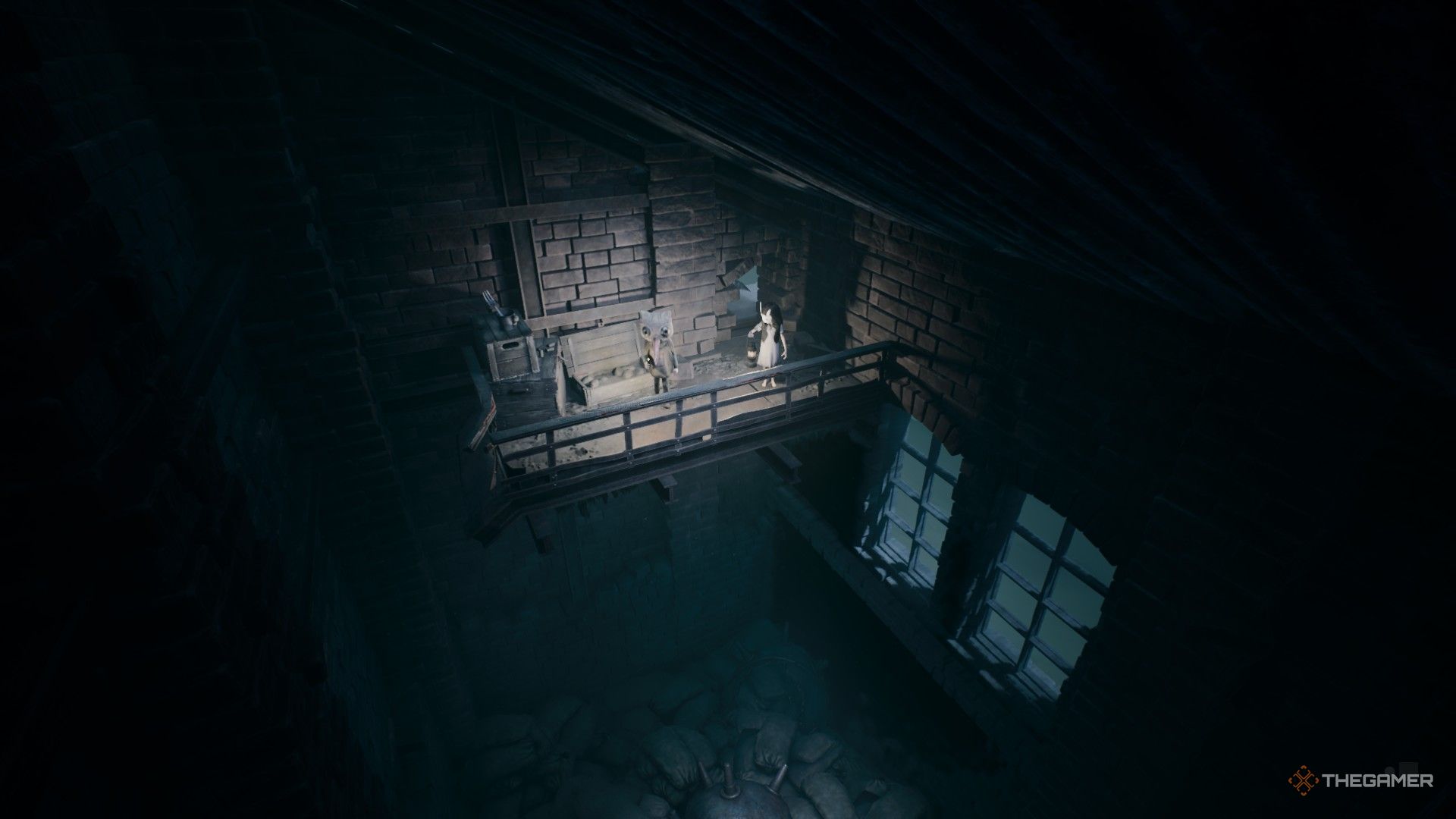 По мере исследования вы обнаружите один из 20 спрятанных плакатов в игре, который откроет концепт-арты в главном меню. Вы также увидите маленькое существо, бегущее к центру области. Ударьте его монтировкой, чтобы получить Маску Ведра, коллекционный предмет, который вам понадобится при подъеме на часовую башню.