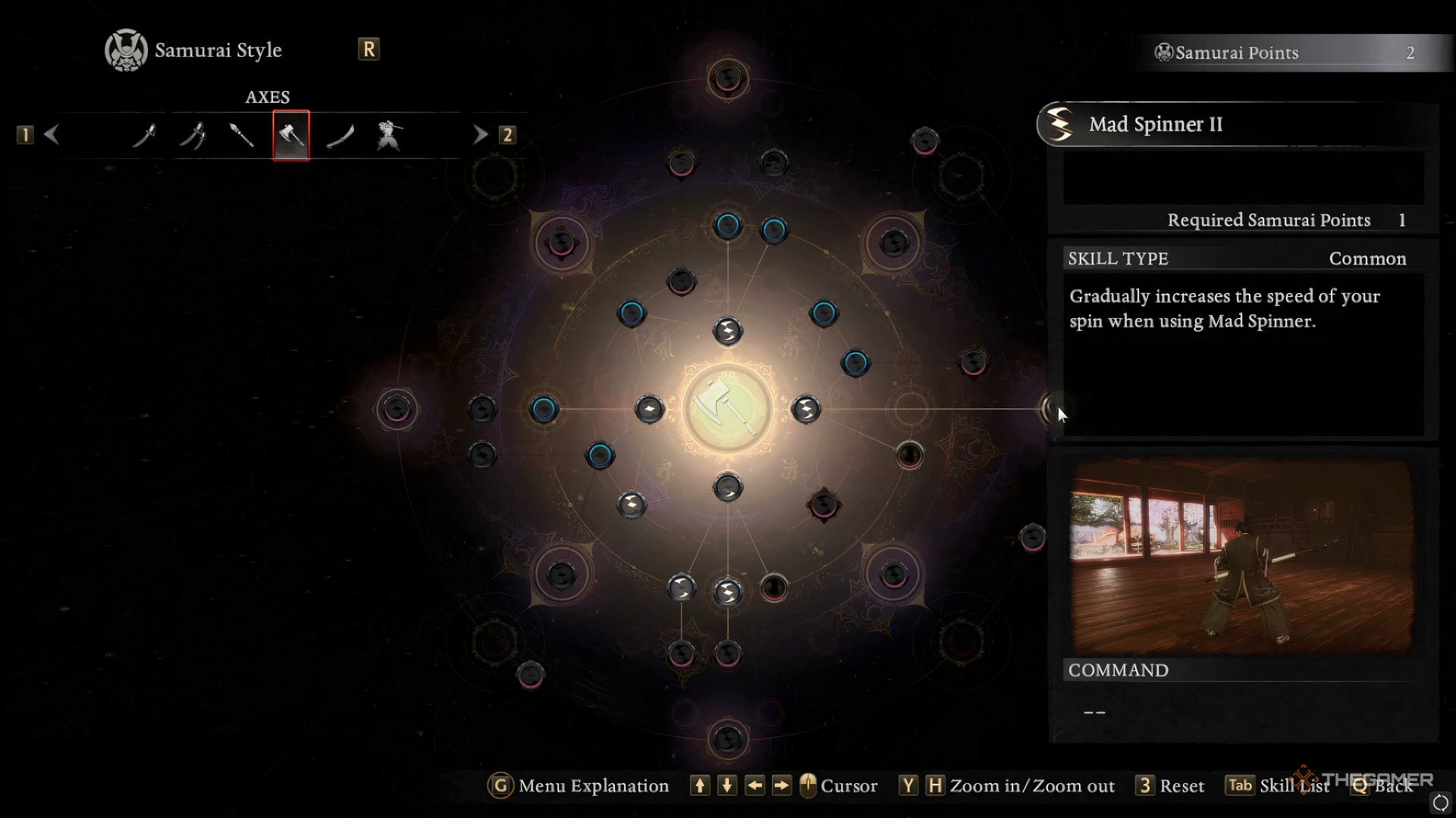 Оружие Топор включает в себя навык Mad Spinner II, который значительно повышает мощь базового навыка Mad Spinner за счёт увеличения скорости его вращения.