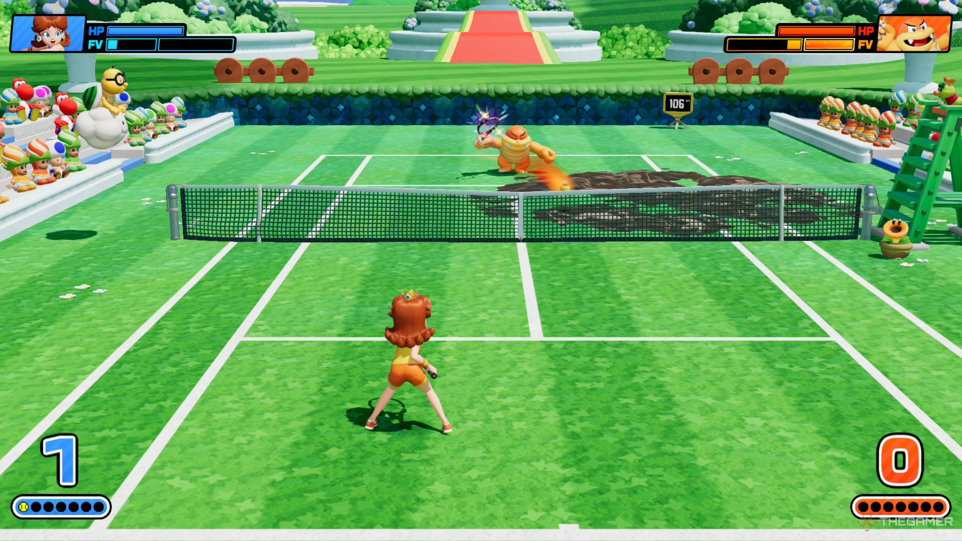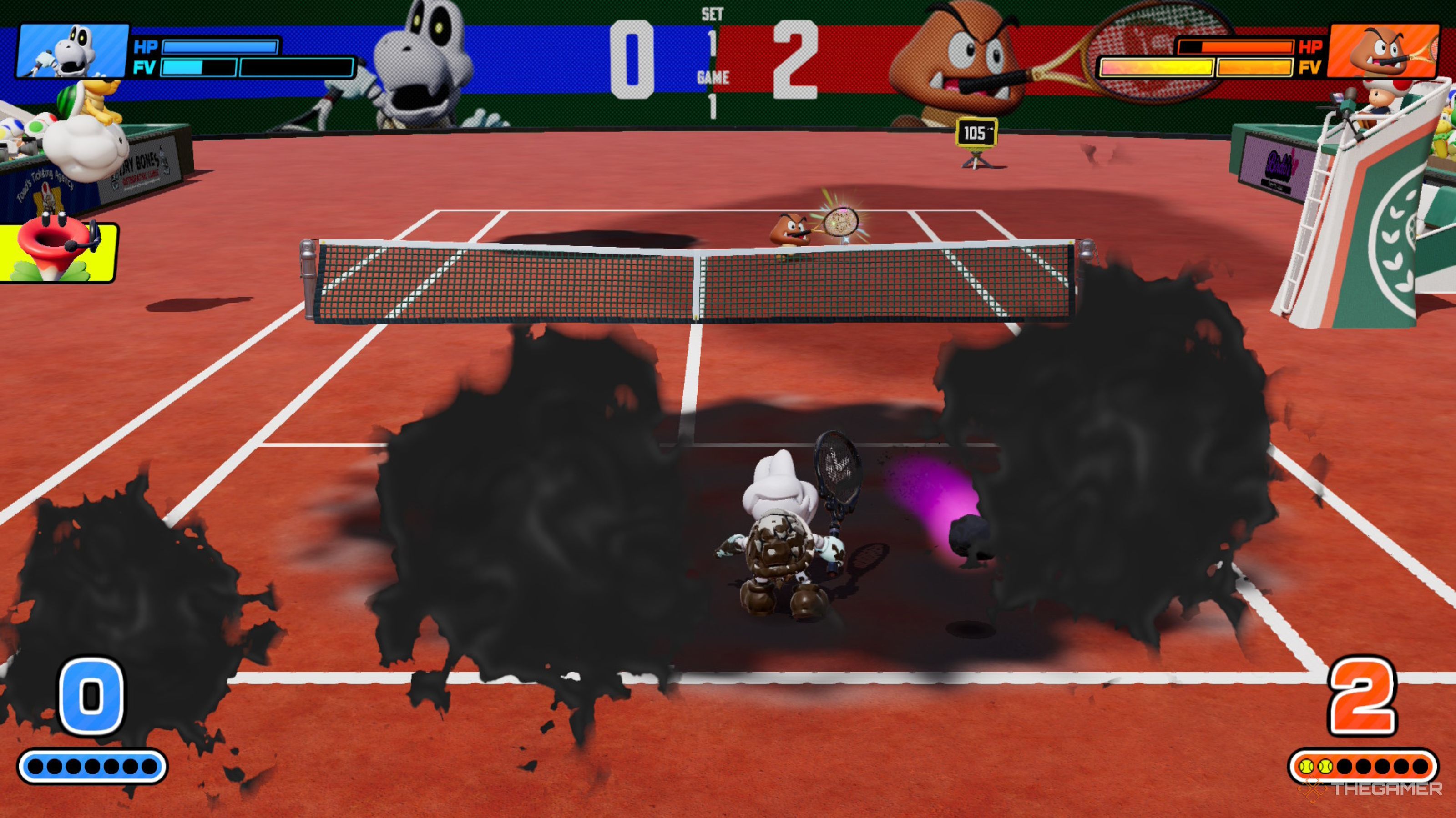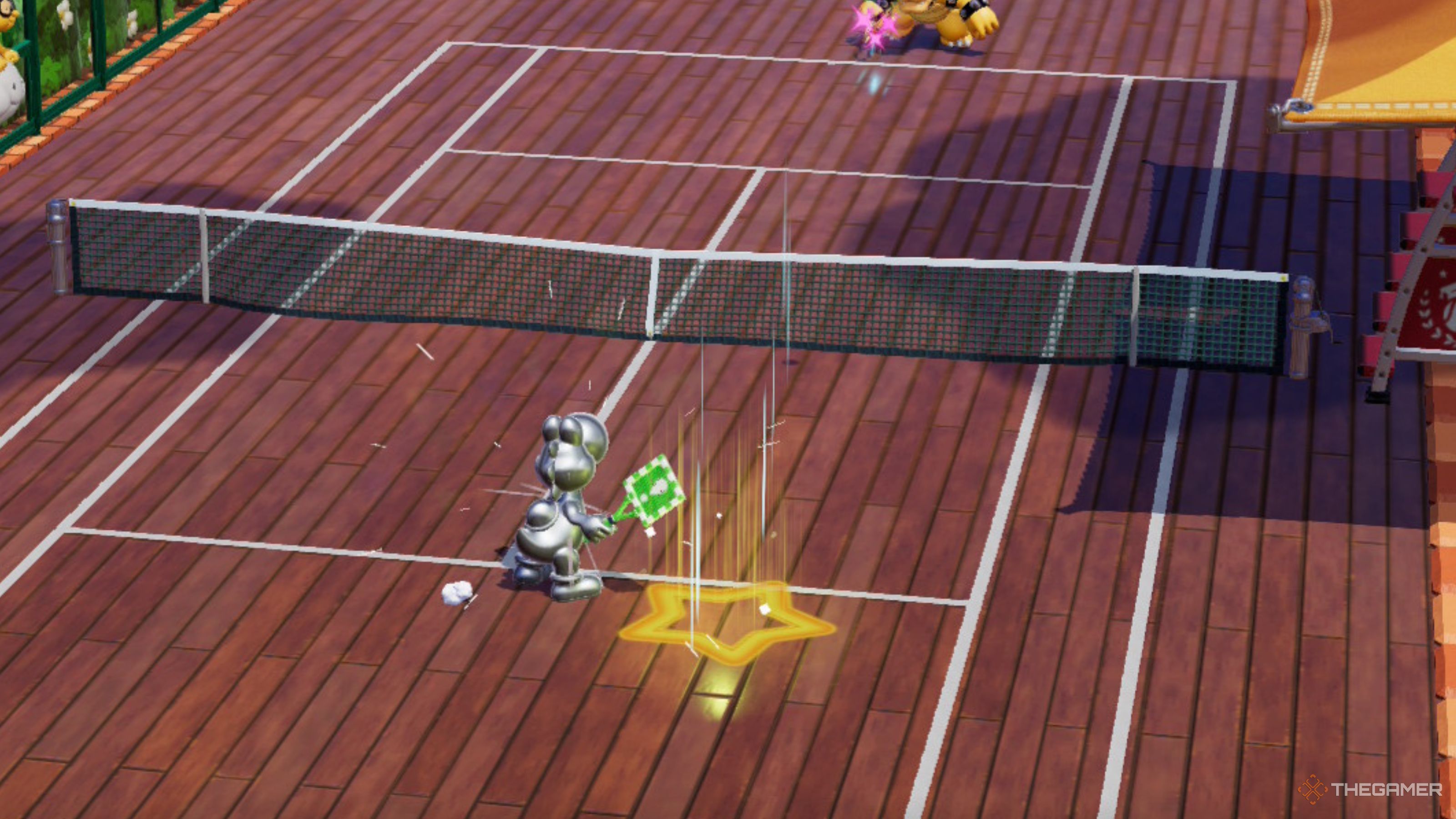 Mario Tennis Fever действительно фокусируется на парных матчах, и вам часто потребуется играть таким образом в режиме Приключения и Испытательных Башнях. Хотя игра с компьютерным партнером иногда может быть раздражающей, функция Shadow Racket фактически использует эту сосредоточенность на парных матчах, чтобы помочь вам победить.