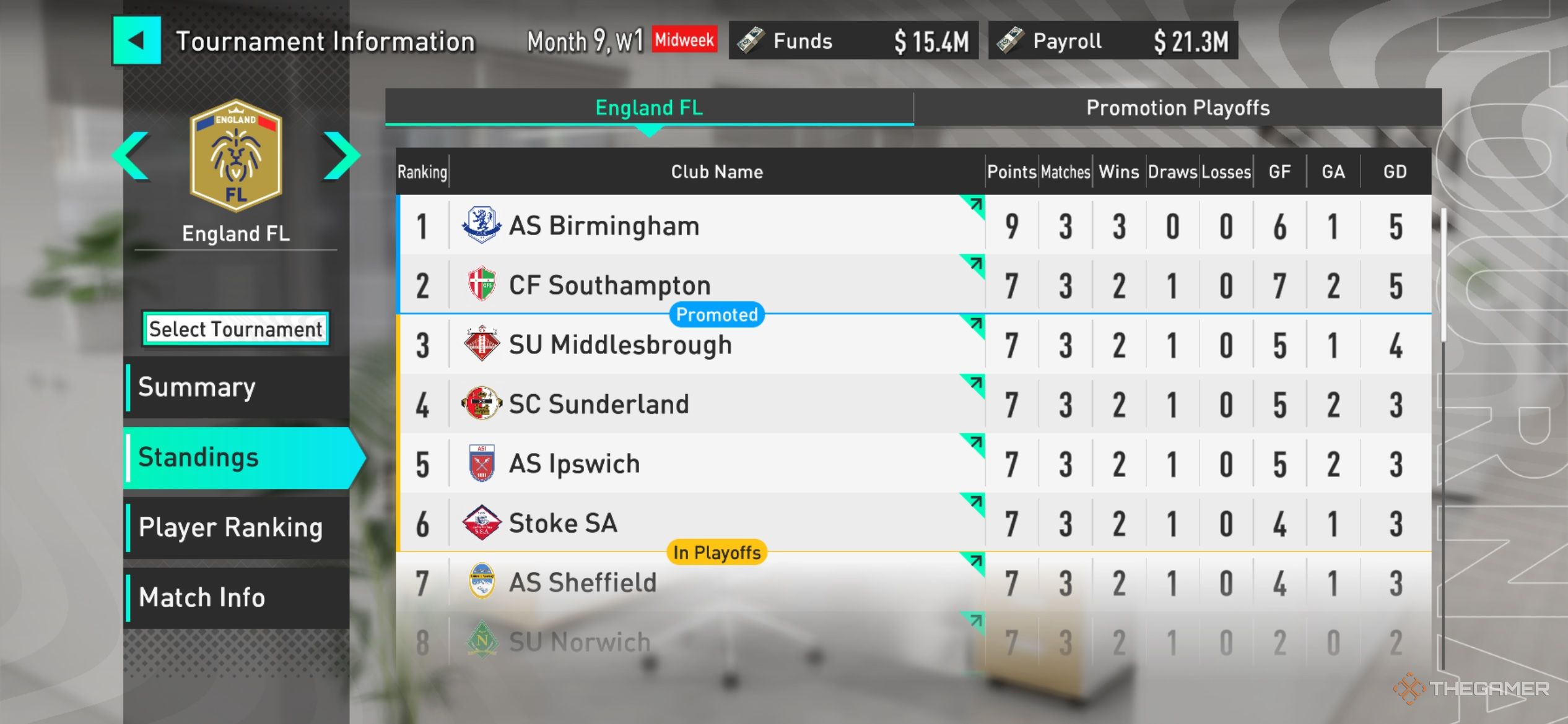 Английская Футбольная Лига – хороший вариант, когда вы начинаете новую игру, особенно если вы не хотите управлять одной и той же командой слишком долго. Действительно сложно оставаться в высшей английской лиге после повышения из FL, поэтому вам, вероятно, придется перейти в другую команду после вашего первого успешного сезона.