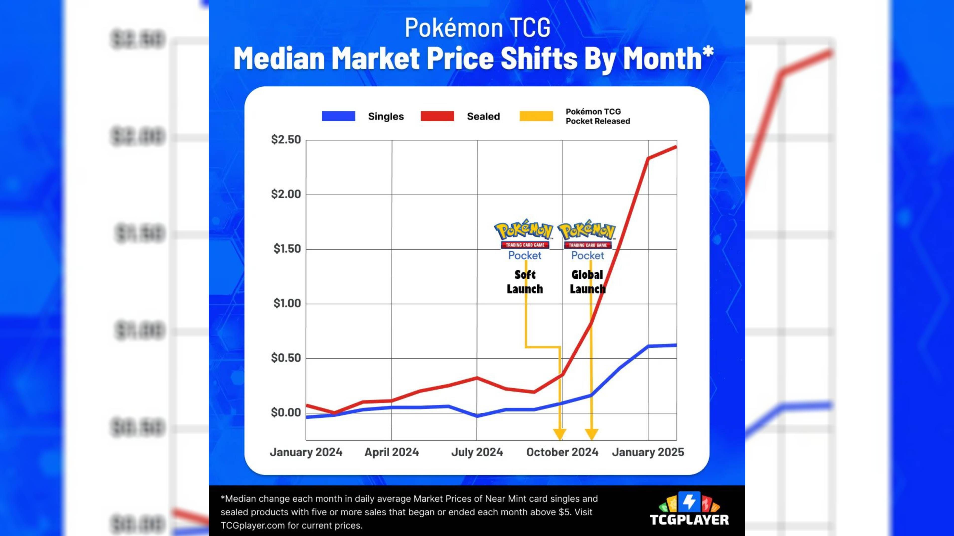 К началу 2025 года средняя цена запечатанных карт Pokemon была примерно в пять раз выше, чем в октябре 2024 года, когда впервые было запущено приложение Pocket. Цены временно снизились в месяцы, предшествовавшие выпуску Pocket, но затем резко возросли после того, как приложение стало доступно.