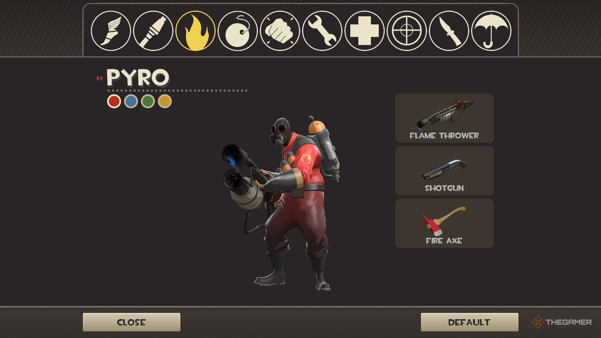 Pyro имеет два дробовика: стандартный и Twin Barrel, который мощно отбрасывает врагов назад. У него также есть специальное оружие под названием Flare Gun, которое наносит дополнительный урон врагам, которые уже горят.