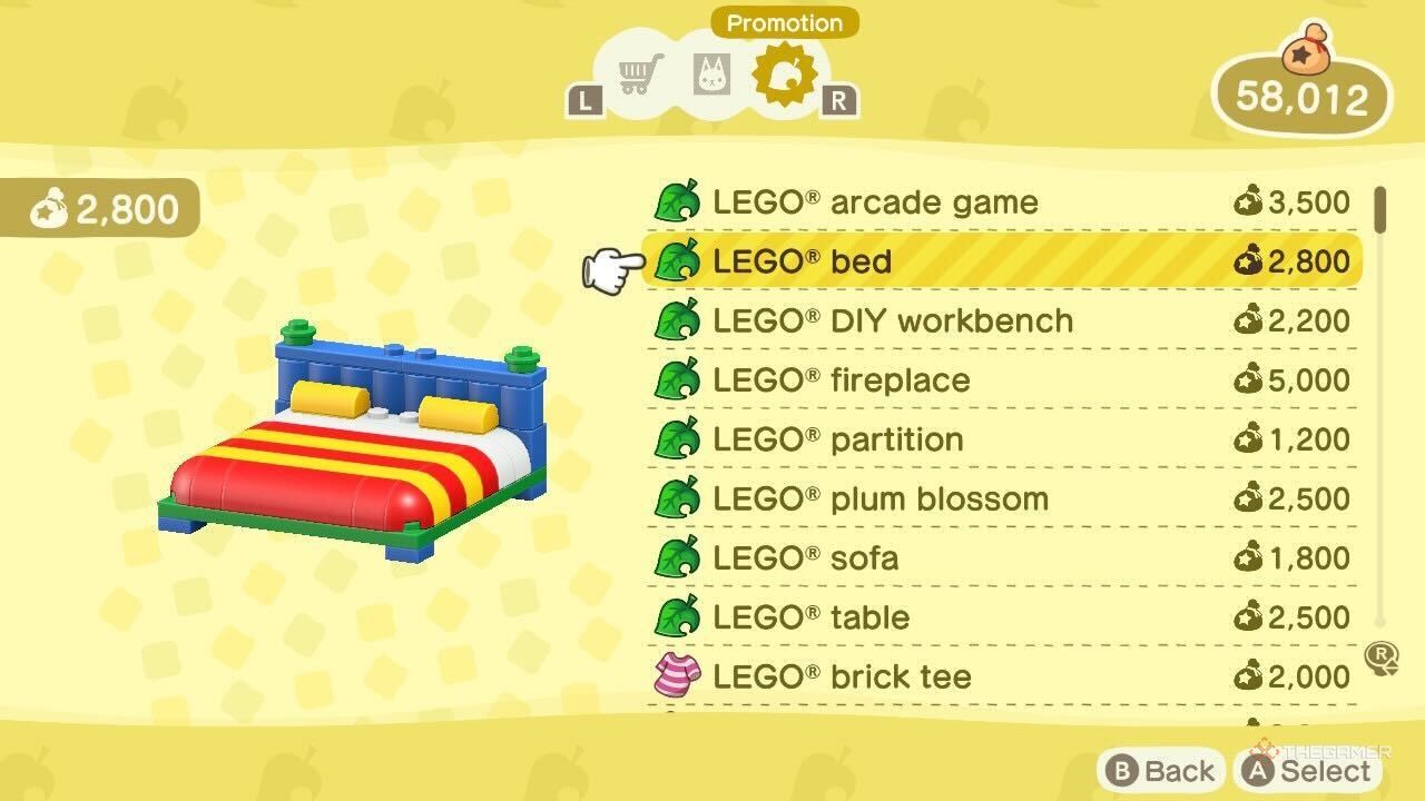 Мебель Lego, разработанная для сотрудничества с Animal Crossing, закономерно вызывает сравнения с оригинальной линией мебели Kiddie, особенно учитывая, что некоторые предметы Kiddie появляются вновь по мере расширения вашего отеля. Например, кроватка Kiddie кажется более игривой, чем её Lego-аналог. Хотя узор из оригинальной серии и был перенесен на простую деревянную кровать, он не передает того же шарма. Она выглядит немного лучше в разных цветах, но в целом все еще кажется несколько жесткой.