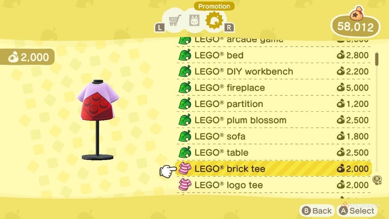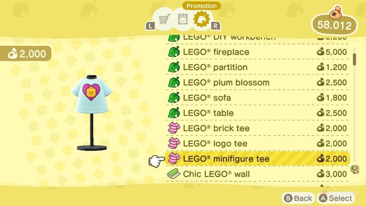 Из трех футболок с тематикой Lego, доступных в приложении Nook Shopping после обновления, футболка Lego Minifigure Tee – хороший выбор – она действительно милая! Было бы еще лучше, если бы сотрудничество с Lego включало вдохновленного Lego жителя, подобно тому, как Splatoon и The Legend of Zelda получили специальные предметы и жителей.